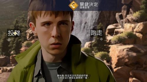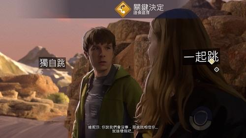 「杰伊」和「維妮莎」逃跑QTE完,關鍵決定選「一起跳」,就會跳「走入荒野」獎盃。