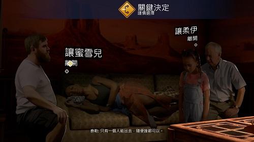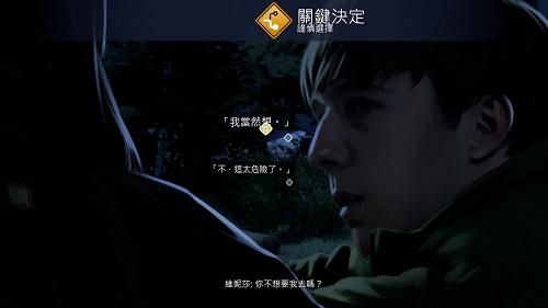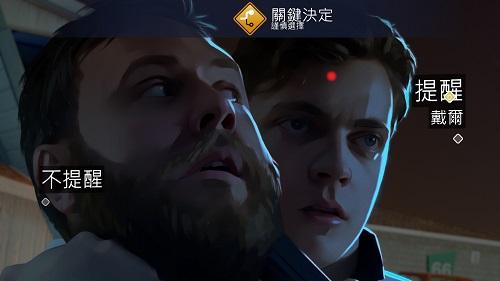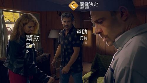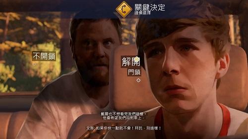 玩到關鍵決定,「文斯」選「提醒戴爾」,就會跳「躲掉子彈」獎盃,再來跳「陷入陷阱」獎盃。
