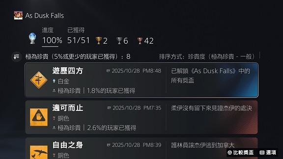 51.遊歷四方: 已解鎖《As Dusk Falls》中的所有獎盃 [白金]