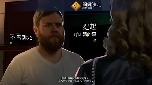 玩到關鍵決定,「雪倫」對話,「文斯」選「提起呼叫器的事」,就會跳「暗箭難防」獎盃。