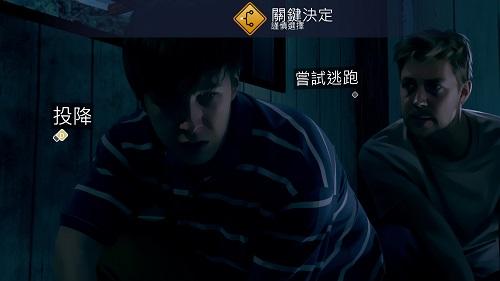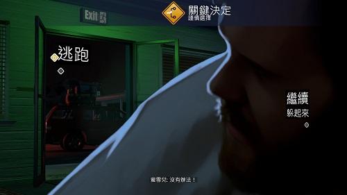 之後經過一段「文斯」回憶劇情,警察進來後,「文斯」選左方「逃跑」。