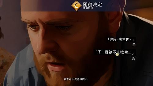 到回憶劇情,玩到關鍵決定,「文斯」選「不,應該不止這些...」。