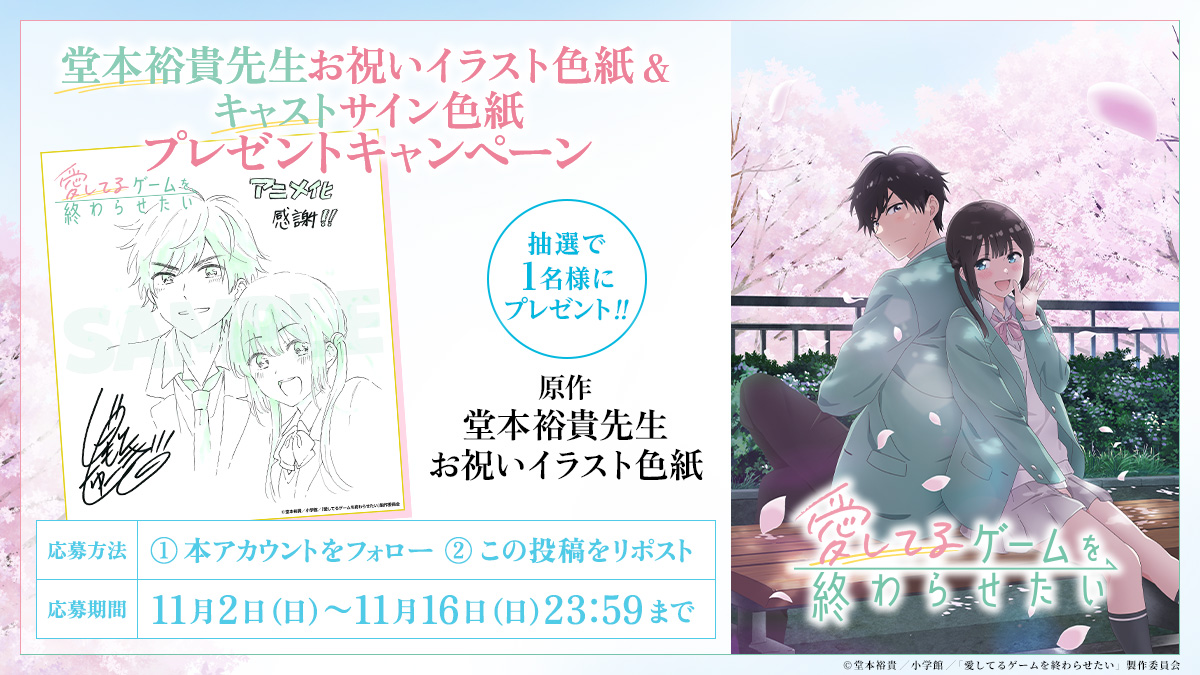 同時,官方也舉辦抽選活動。只要關注官方 X、並轉發指定推文,便可參加原作・堂本裕貴 老師的賀圖色紙、石川界人以及伊藤美來 親簽色紙的抽選活動、名額各一名。