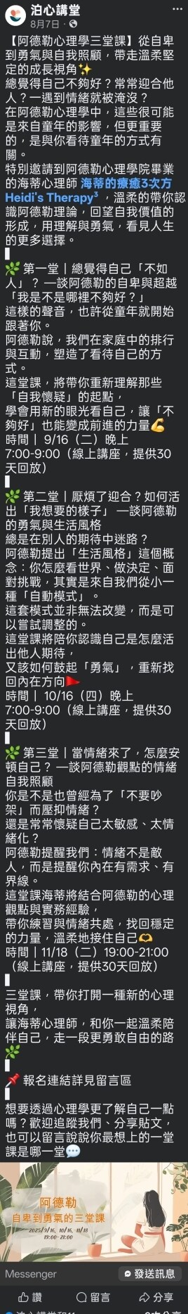 因此報名這個講座,共有三堂課,目前只開放兩堂。