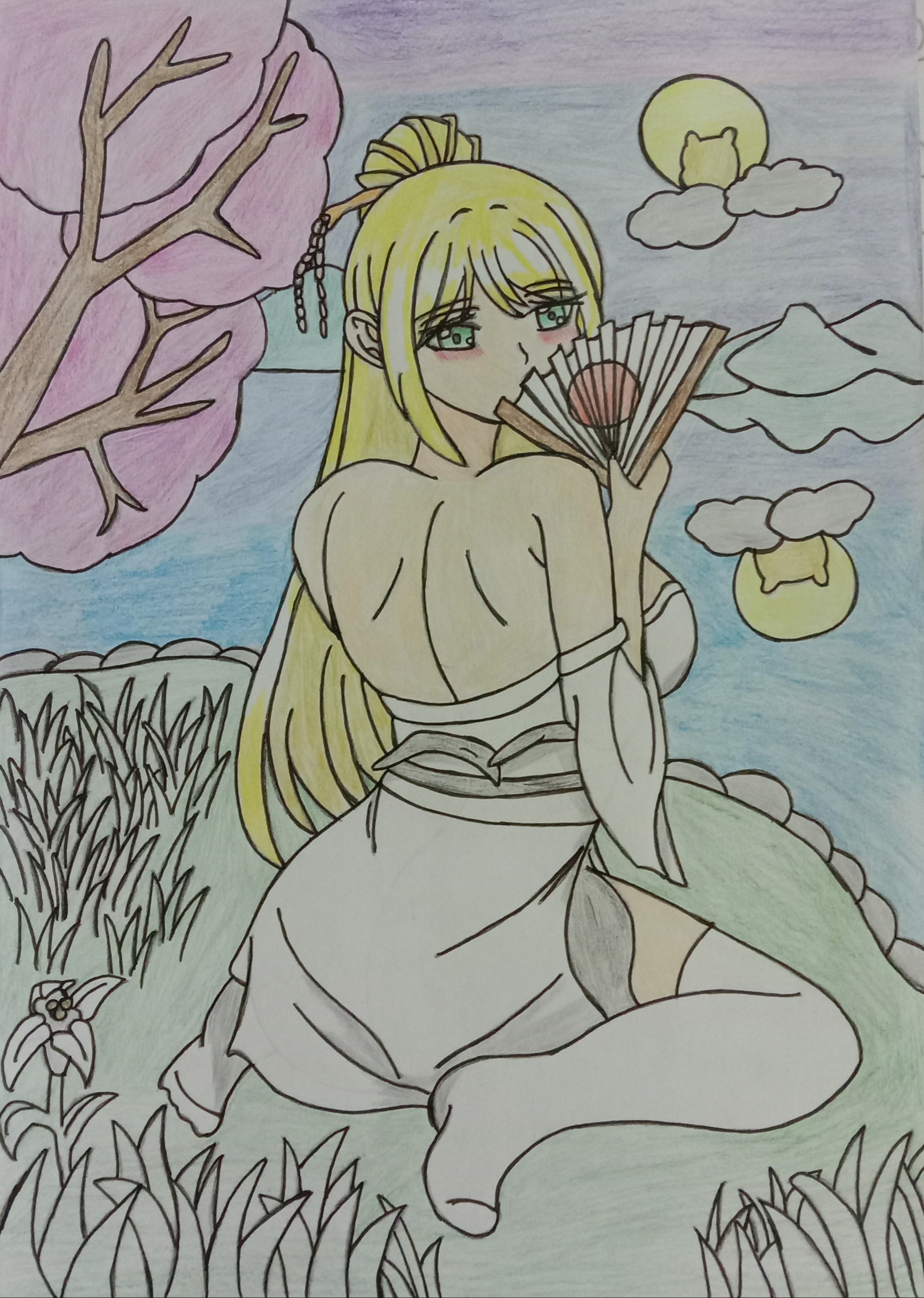 說回正題,關於凰風,怎麼說ㄋ,一個很特別的角色(柳叶家騷女&深宮怨婦),她4窩筆下少數幾位被其它朋友畫過的女角(另一個是路哥畫的孫月千紗),再來......她也是我小說裡擁有最多詩詞的角色。