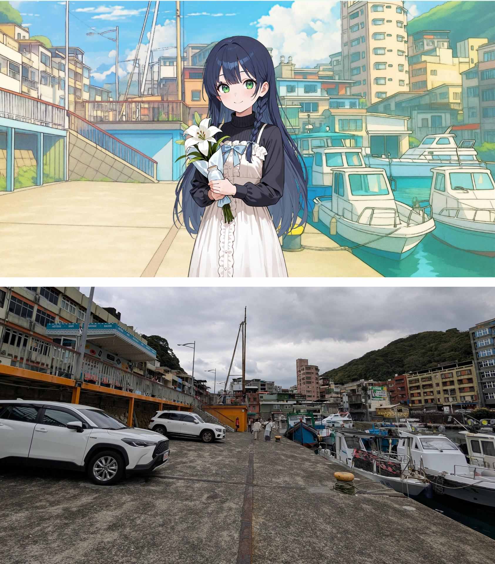 文雄與嘉琪初次見面的地方,在嘉琪的邀約下一同欣賞繽紛的漁港街屋與周邊的造船廠遺跡,疑好像在哪裡見過這名少女,這真的是我們的「第一次相遇」嗎?