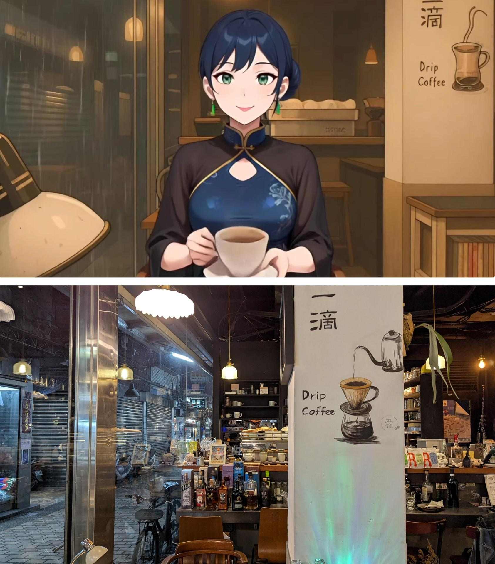 丸角自轉生活咖啡嘉琪的「姑姑」—王彩華,正在咖啡廳品嘗著咖啡看著窗外的景致,好香,我是指咖啡。位於委託行商圈的咖啡廳在釋出的DEMO版中還沒有提及,不知道彩華是不是這間有著懷舊風格咖啡廳的老闆呢。