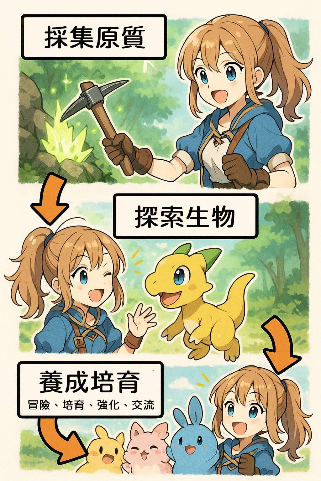 - 投入越多原質,越有機率探索高階稀有生物,外觀與基礎能力也更強