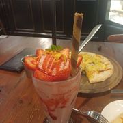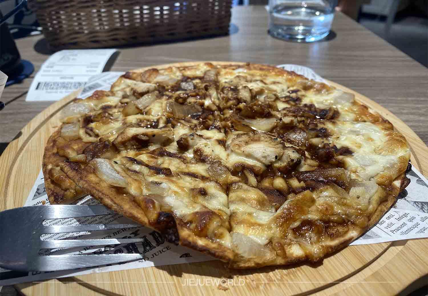 披薩是薄片的,吃起來像是脆脆的餅乾,沒有注意到披薩是這種薄脆的,不是自己喜歡吃的啊啊!!