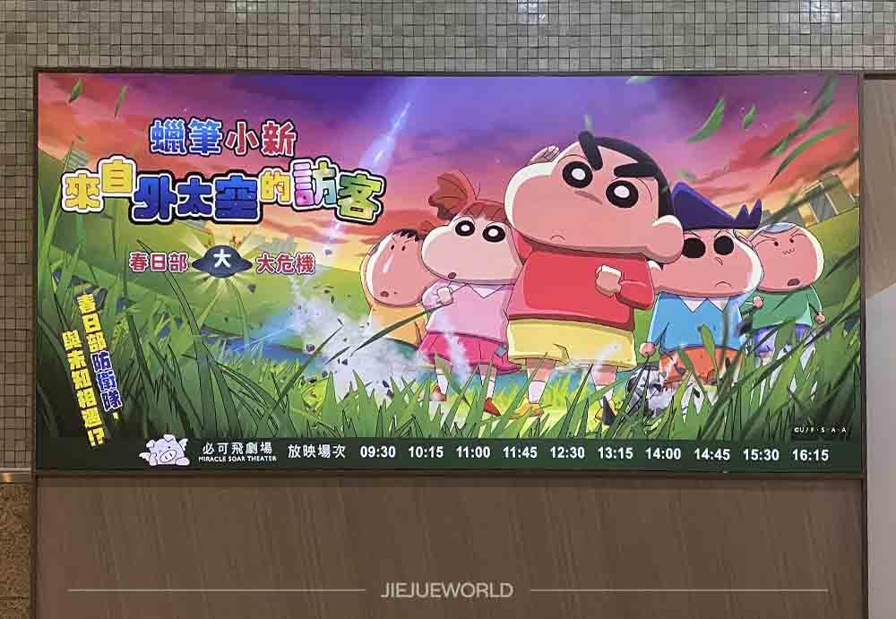 必可飛劇場是今年七月才正式啟用的,第一部片就是播《蠟筆小新來自外太空的訪客》。票價70元,播放長度大概25分鐘。