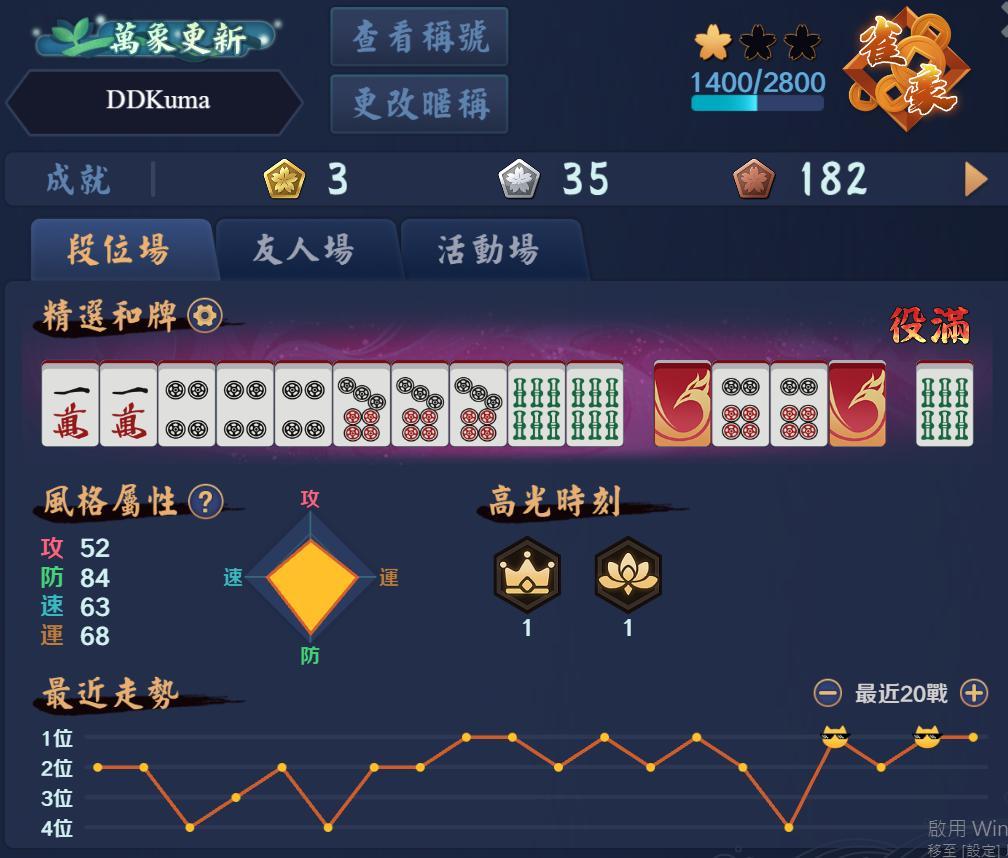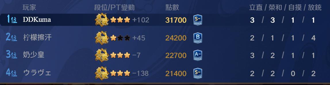 最近日麻起伏有點大 (雀魂)