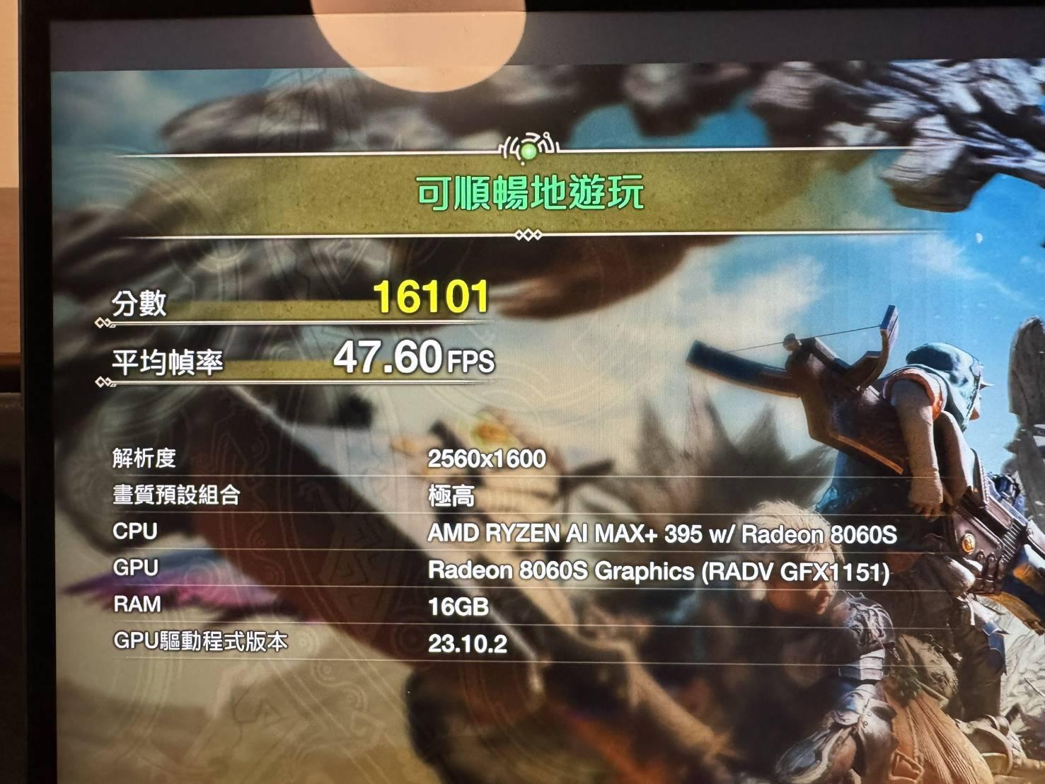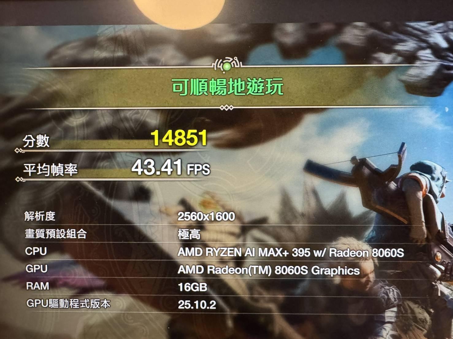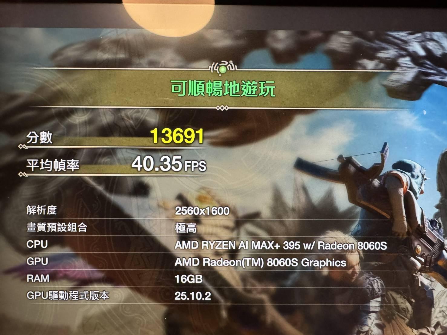 Z13 395版 測試 荒野跑分 因Bazzite無法使用3D測試跑分 只能使用魔物獵人 荒野跑分測試