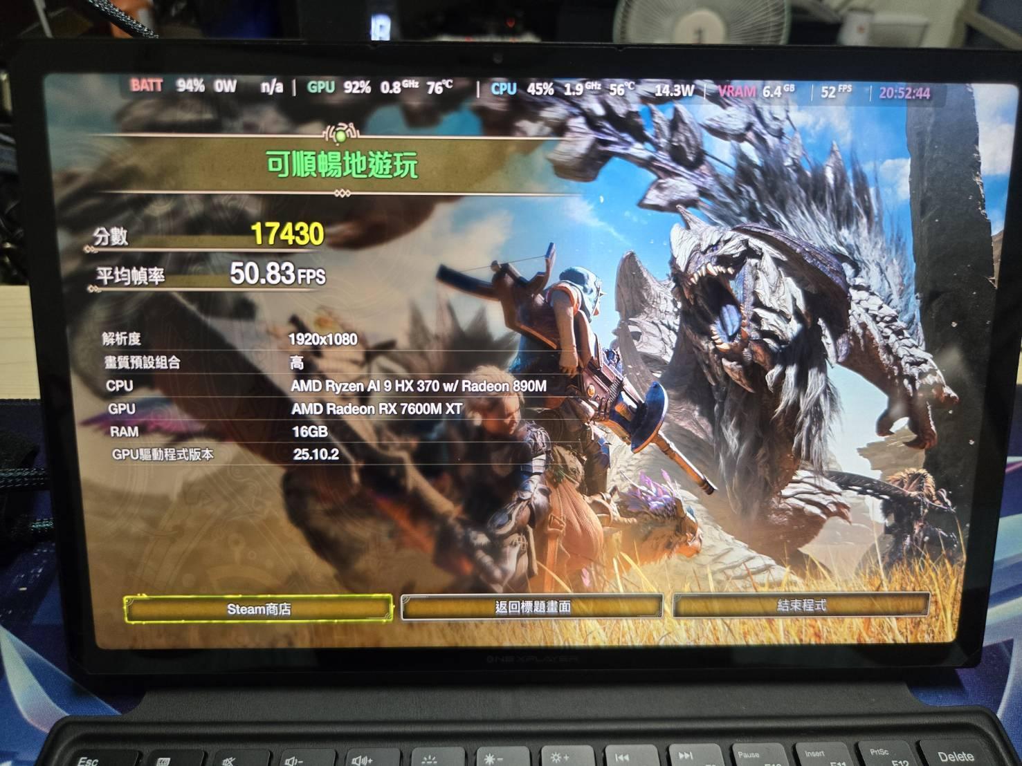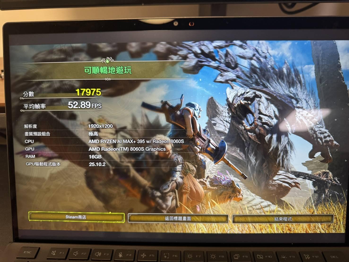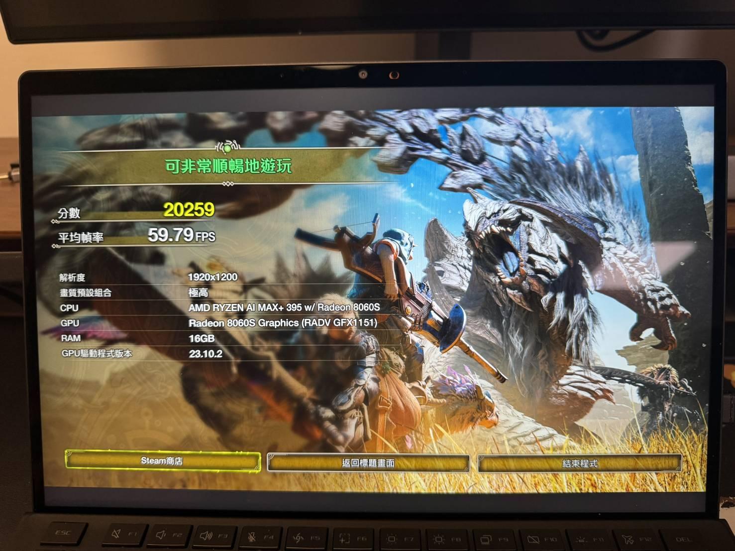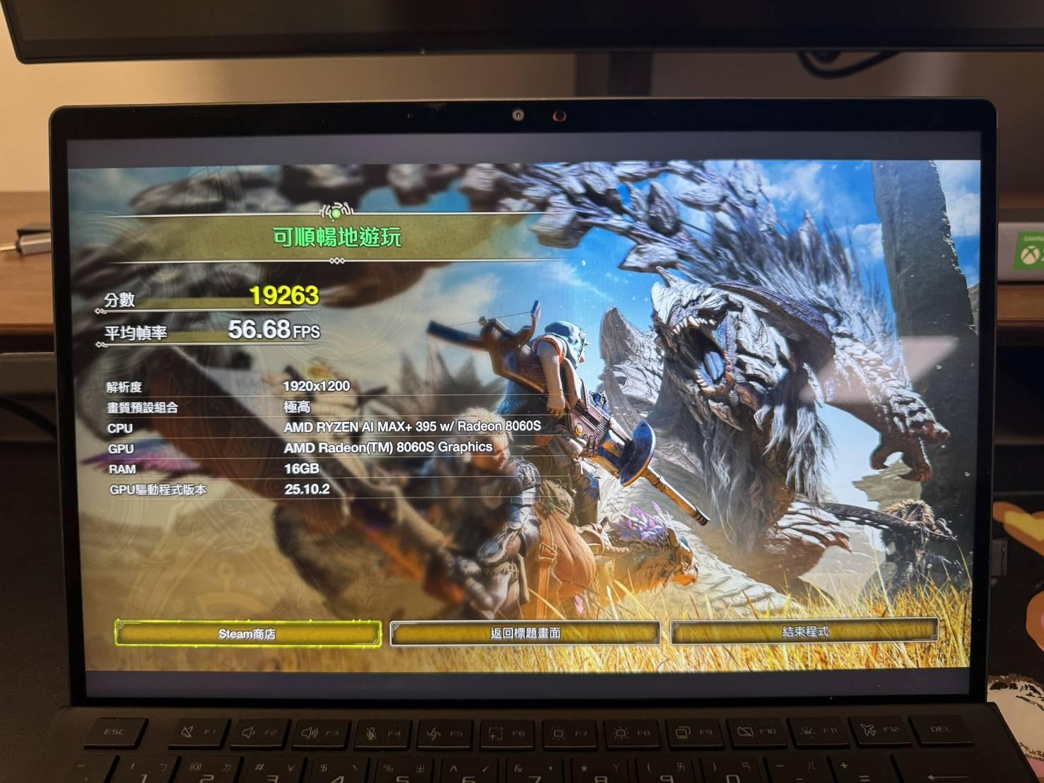 Z13 395版 測試 荒野跑分 因Bazzite無法使用3D測試跑分 只能使用魔物獵人 荒野跑分測試