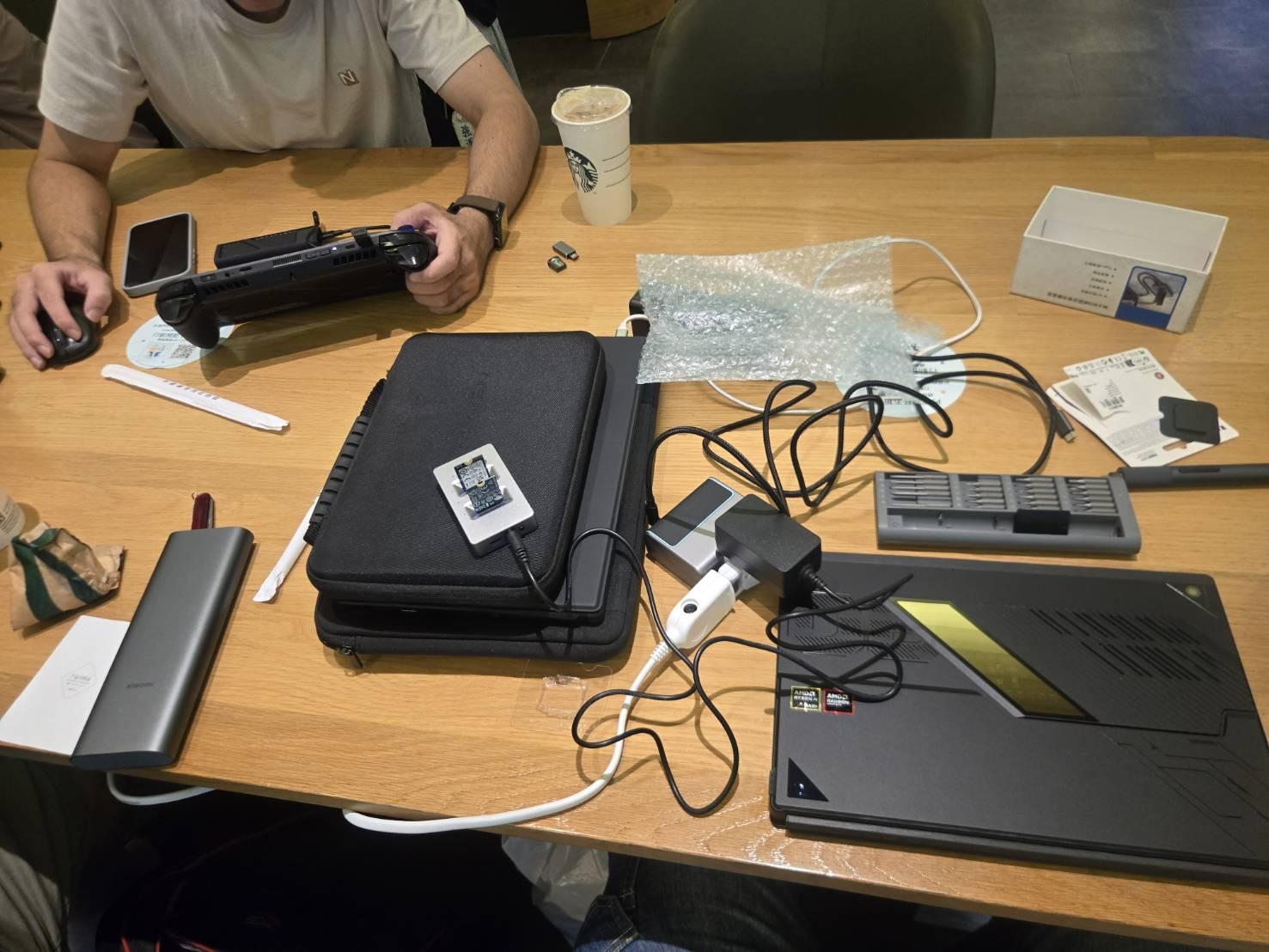 四人在星巴克開箱Z13 395版