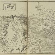 圖片來源- Wiki:歌川國芳的《日本国開闢由来記》巻一的少彥名命乘浪現身的場景(右上)
