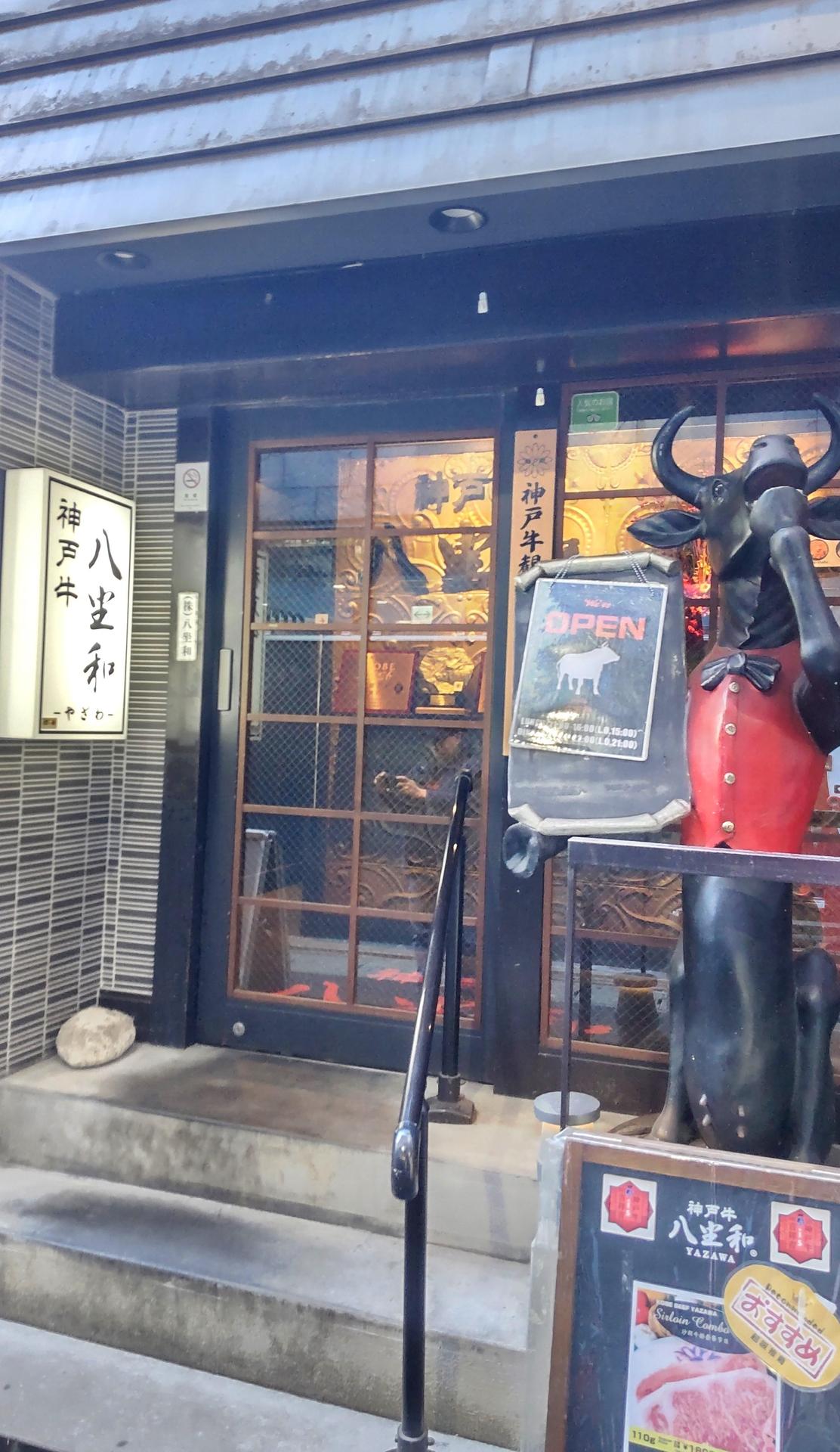 跑去八坐和吃神戶牛,中餐免費附贈套餐...還是很貴阿!我只吃倒數第二等級,110g就6250日圓含稅,然後加點兩貫牛中腹壽司1980日圓。我朋友點第三等級165g...13xxx日圓。可是...真得好吃,那個中腹壽司也很厲害,一點點嚼勁,還是非常好入口,真想不到是牛肉。建議預算如果有稍微多一點,嘗試高等級一點看看,真的好吃。