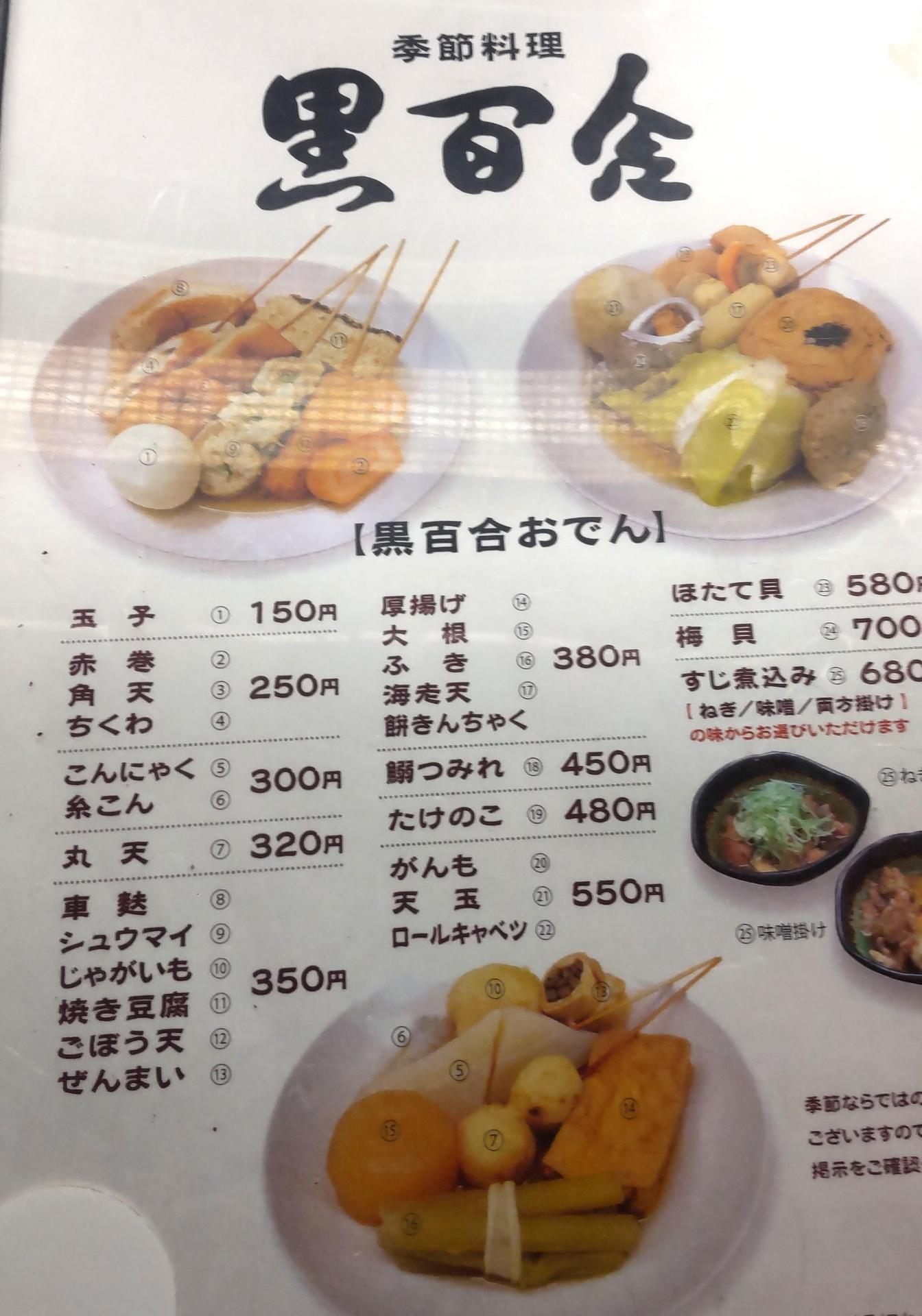 午餐:季節料理・おでん黒百合