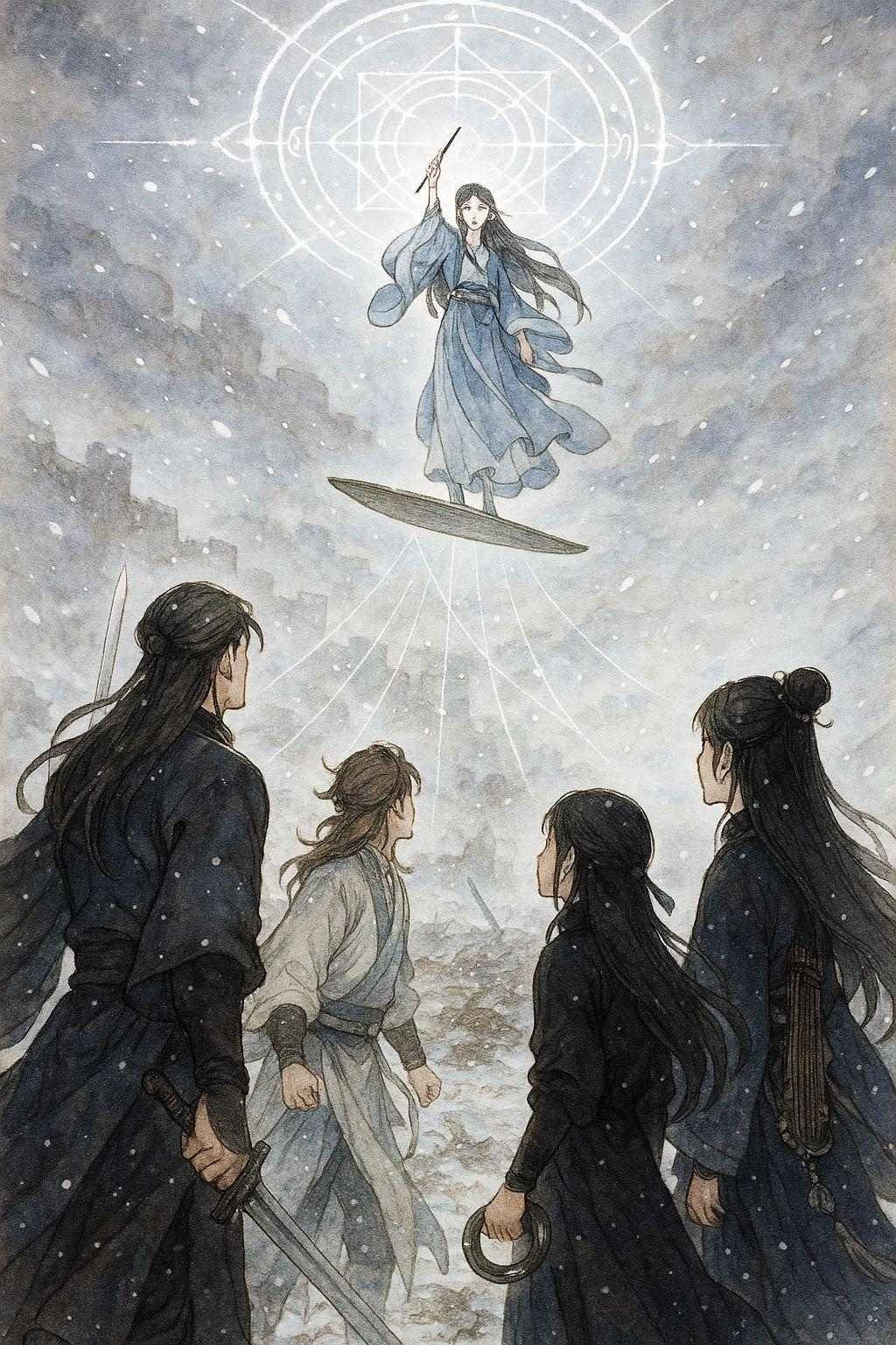 丘芷凝立在殘垣間,手中陣盤一收,最後一座靈泉療陣緩緩散去。靈光漸息,幾名重傷修士長出一口氣,氣息終於穩了下來。她抹去額頭的汗,手指仍微微顫抖。風雪灌進靈氣耗盡的身體裡,冷得刺骨,卻也讓她徹底清醒。她轉身走進城樓。