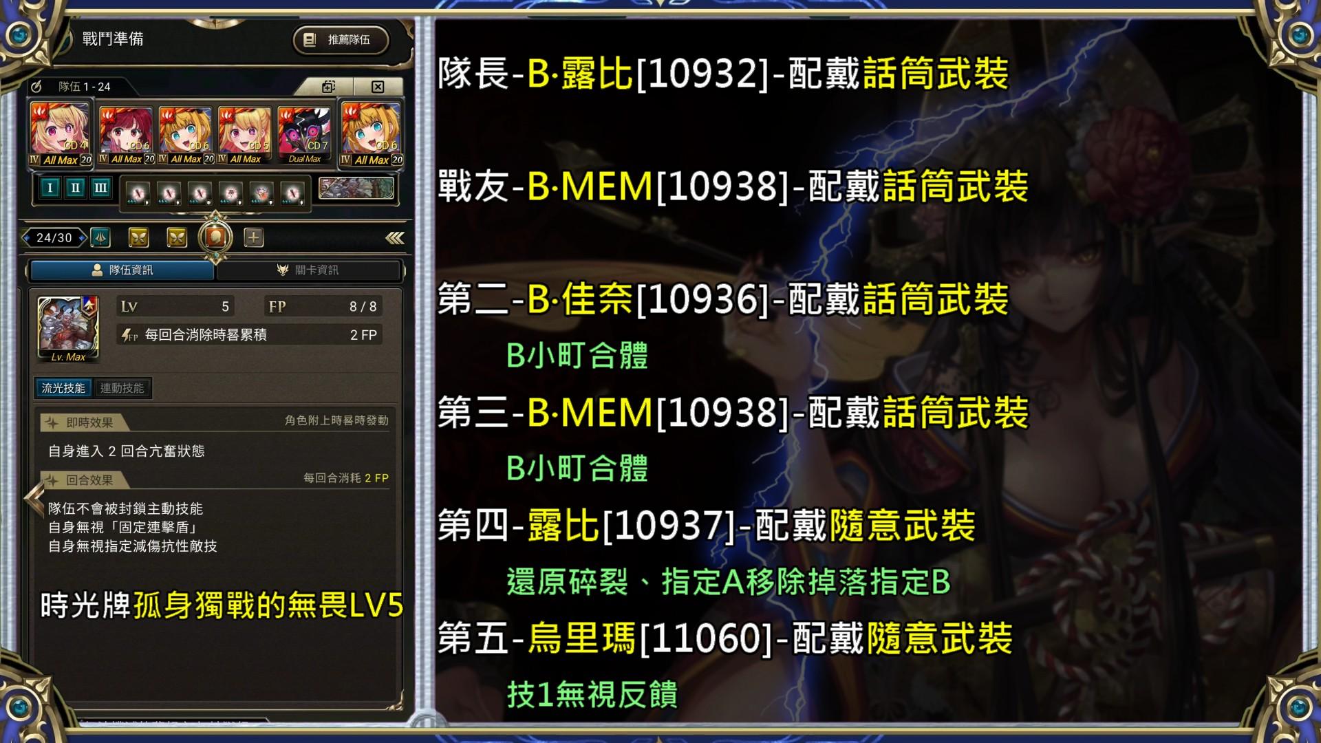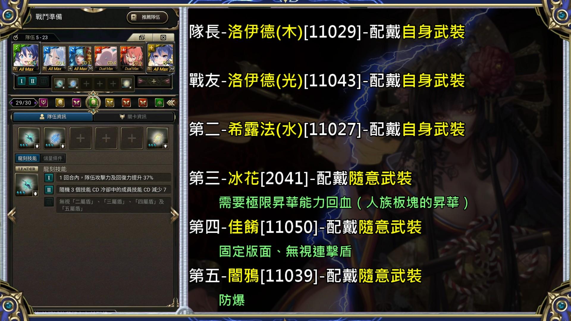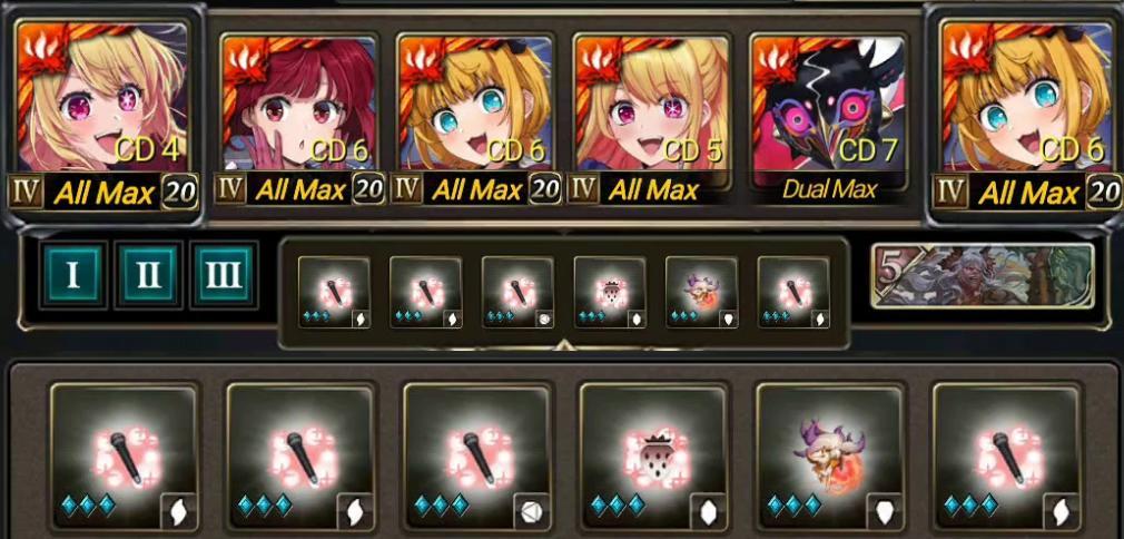 開露比[場上最多的雜珠(水/木/光/暗→心)]、隊長技1、烏里瑪技1,