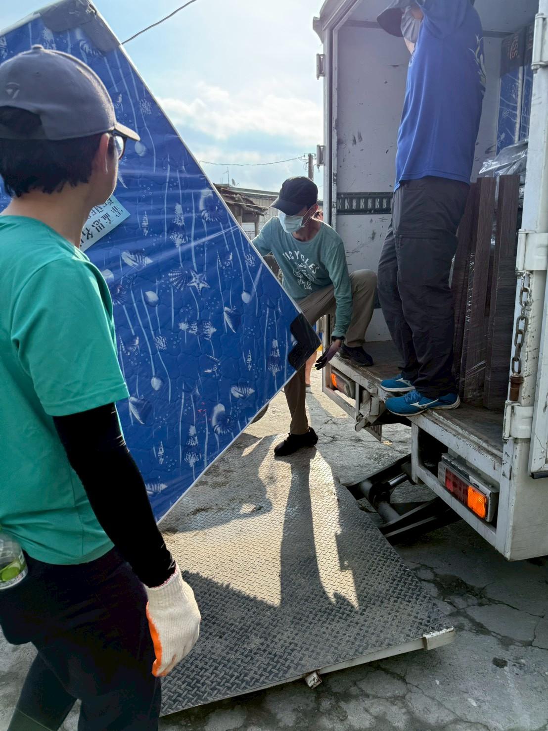 貨車載運及人海戰術接力幫忙