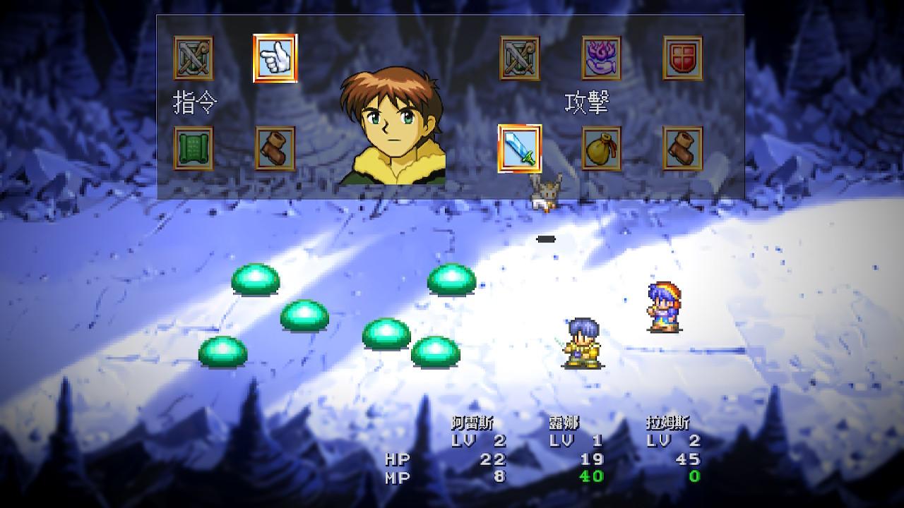 另外戰鬥系統是採用包含移動條件的回合制戰鬥,而非當時日式RPG常見的隔空戰鬥(如Final Fantasy系列),雖非首創,只是當時這類有含移動條件的回合制RPG多半以美式RPG為主,有類似設計的日式RPG並不常見(如曾經聊過的PC-E淒之王傳說),而且許多遊戲都是把移動指令獨立出來,對戰鬥頻繁的RPG遊戲來說,不只攻擊還要選擇移動位置,因此拉長了每場嘍嘍戰鬥的時間,並不利於遊戲性