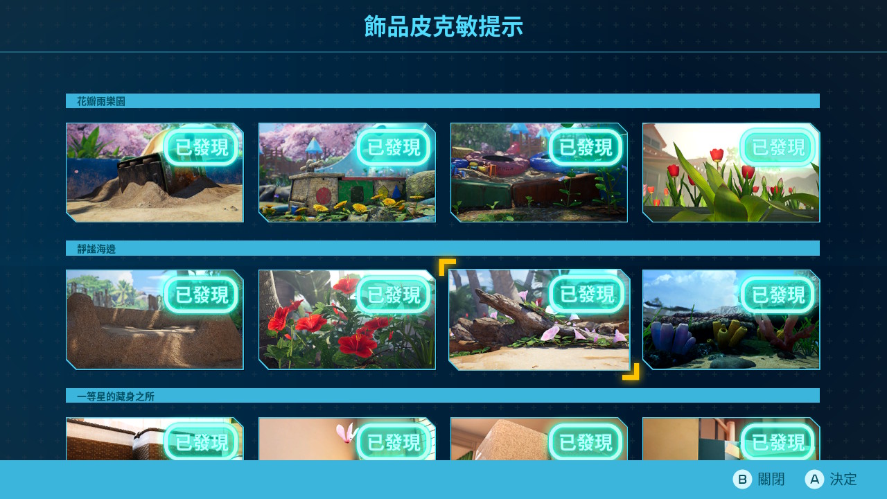 只要救到"丁格"之後,進入暖陽庭園即可觸發裝飾皮克敏的要素。六個區域,每個區域都有四隻可以找,到提示的場景中,用上述新的拍照機制拍起來,就能加入隊伍;死了沒也差,物體會留著,下次叫出的皮克敏會繼續帶著"前皮"的遺物繼續奮戰XD。