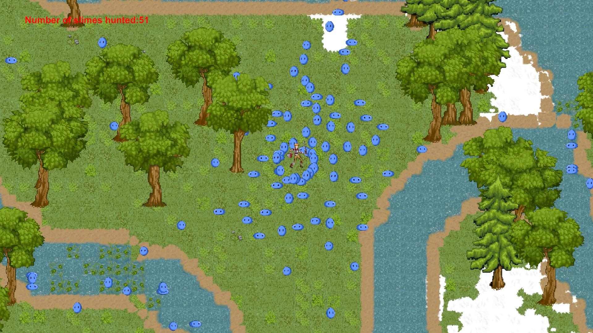 這次要發布試驗性遊戲的封閉測試,"守獵一群史萊姆",內容是一位戰士受到一群史萊姆慢慢地靠近,戰士可以自由走動,並且用劍將一群史萊姆擊敗,每擊敗一隻史萊姆可獲的一個已守獵多少隻史萊姆,如果有興趣歡迎提出對遊戲操作的意見,並且共同討論。 地圖為大地圖,所以範圍相當遙遠,可能會發現到雪地或是沙漠或是綠色草地。