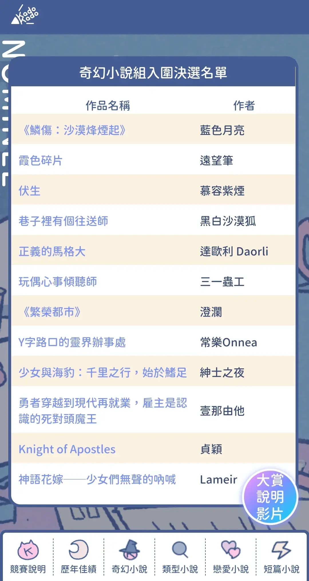 《正義的馬格大》入圍KadoKado百萬小說大賞決選啦!