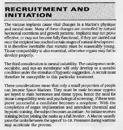 基因種子這個設定從戰鎚40K的一版就有提到,同時這也是為什麼星際戰士限定男性的原因,只有男性的賀爾蒙與基因結構才能匹配基因受精卵 ( zygotes ),這個基因受精卵具體要幹嘛的下面會提到。