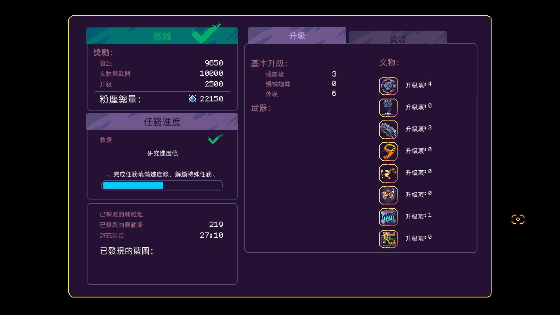 4. 另外也可以發現不同的遺物、槍械,單局都可以升級,但在結算階段都會被收走,換算成粉塵...