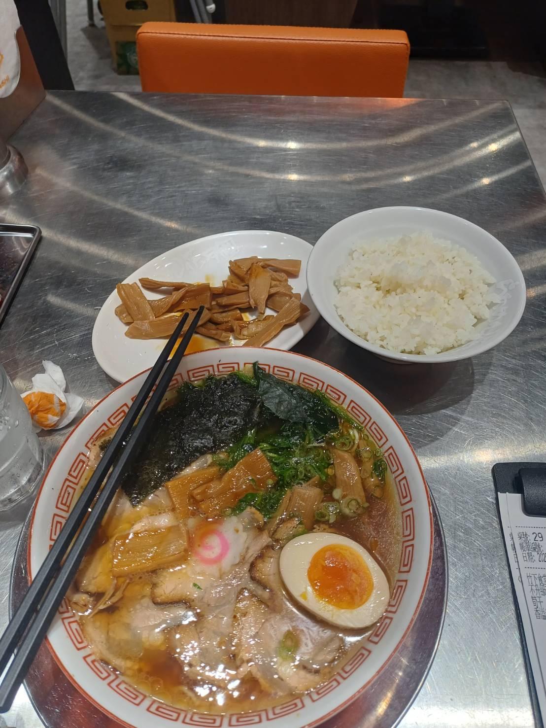 這次嘗鮮將上次在百八龍拉麵吃拉麵的方法,帶入吃花月嵐拉麵,麵吃完時將白飯加入湯裡去配著吃,行程吃拉麵以及吃茶泡飯二種都能平均吃到的體驗,湯的鹹度較百八龍鹹一些,因此桌面旁邊則還有備一杯給顧客飲用的冰開水,價格較百八龍高一些,不過吃完麵後則可考慮是否加二十九元買一隻牛奶霜淇淋來吃(結帳時至櫃台兌換,然後帶出店找個位置去吃。)