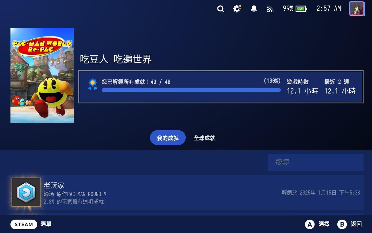 最近嘗試了不少遊戲,但由於多數偏向Rougelike 類型,通常需要數十甚至數百場才能通關,這段時間因為尚未玩完這些遊戲,因此幾乎沒有什麼心得可以分享。直到這幾天,我玩了《吃豆人 吃遍世界》(PAC-MAN WORLD Re-PAC),這款遊戲是一款闖關類型的動作遊戲,遊玩時間相對較短,僅花了十幾個小時便完成全成就。於是,依照慣例來記錄這次的遊玩體驗吧!