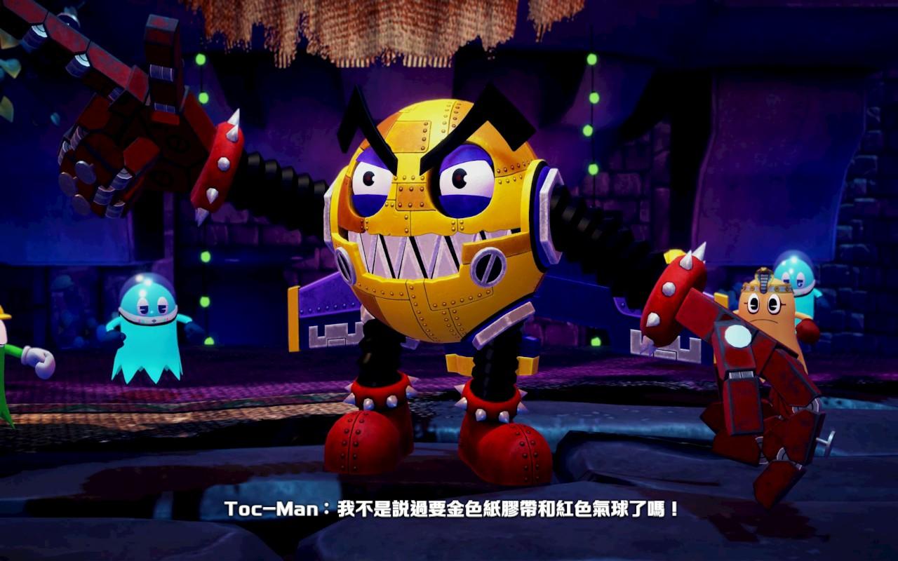 故事就是很經典的:大魔王 Toc-man 綁架了 PAC-MAN 的家人和朋友,因此 PAC-MAN 必須踏上冒險,拯救家人和朋友,並最終擊敗 Toc-man。