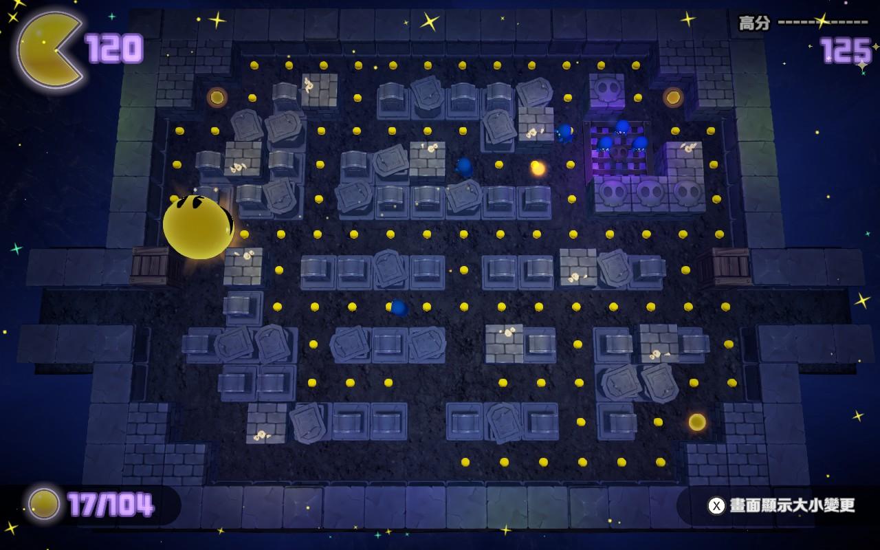 - PAC-DOT 攻擊:使用收集到的小點點丟向敵人進行攻擊,若集氣則可變成範圍更大的炸彈攻擊。然而,在3D 空間中準確瞄準敵人並不容易,因此我很少使用這種方式攻擊。