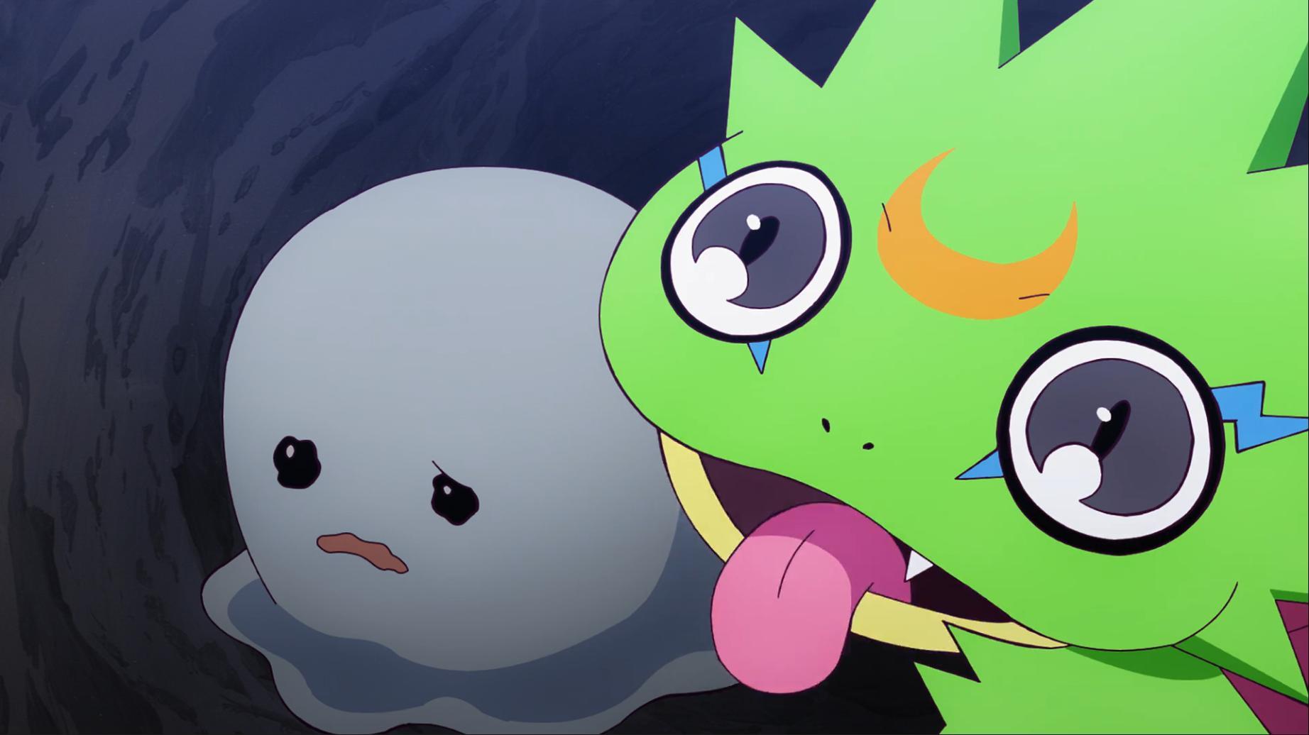 智郎想要和浮游獸接觸卻反而讓對方更害怕 被壁虎獸吐槽智郎長相有點兇兇會把幼年期數碼獸嚇壞的~