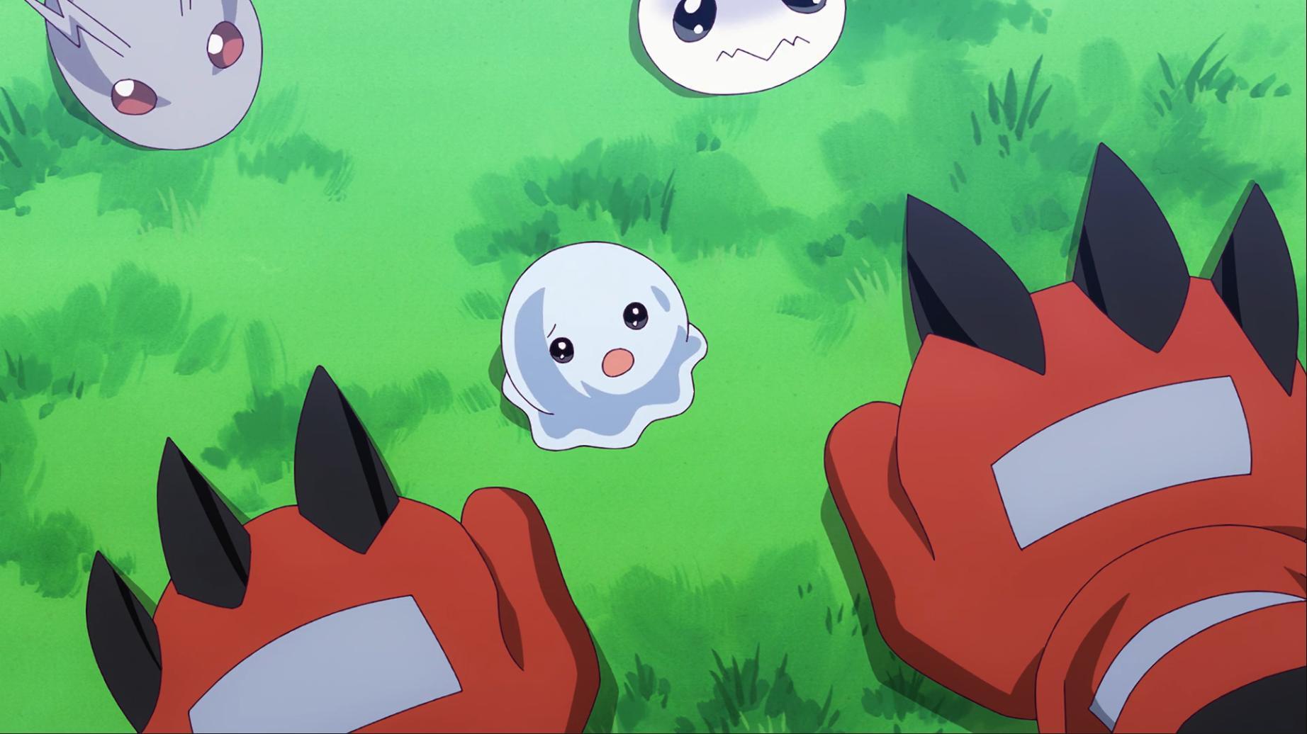 這時一隻普尼獸探出頭 智郎和小歌還記得他是之前那隻鬣狗獸退化的幼年期 普尼獸看到智郎馬上嚇得躲到蕾娜和小心後面瑟瑟發抖 看到智郎就發抖也難怪了 因為當初智郎還想要當場將他殺無赦 智郎見到蕾娜和小誠甚至連小心 普莉露和梅洛倫想要認真地幫助京和奈奈 開始有些迷惘不太確定自己要做什麼了...