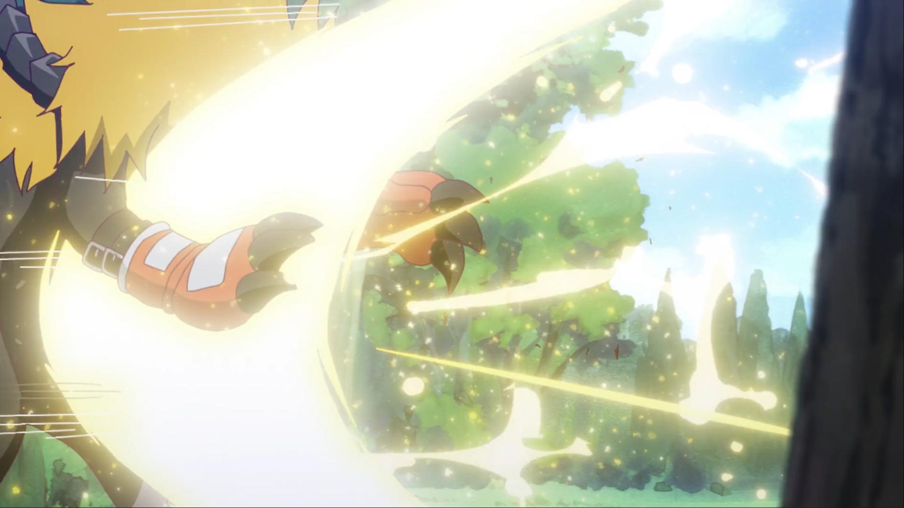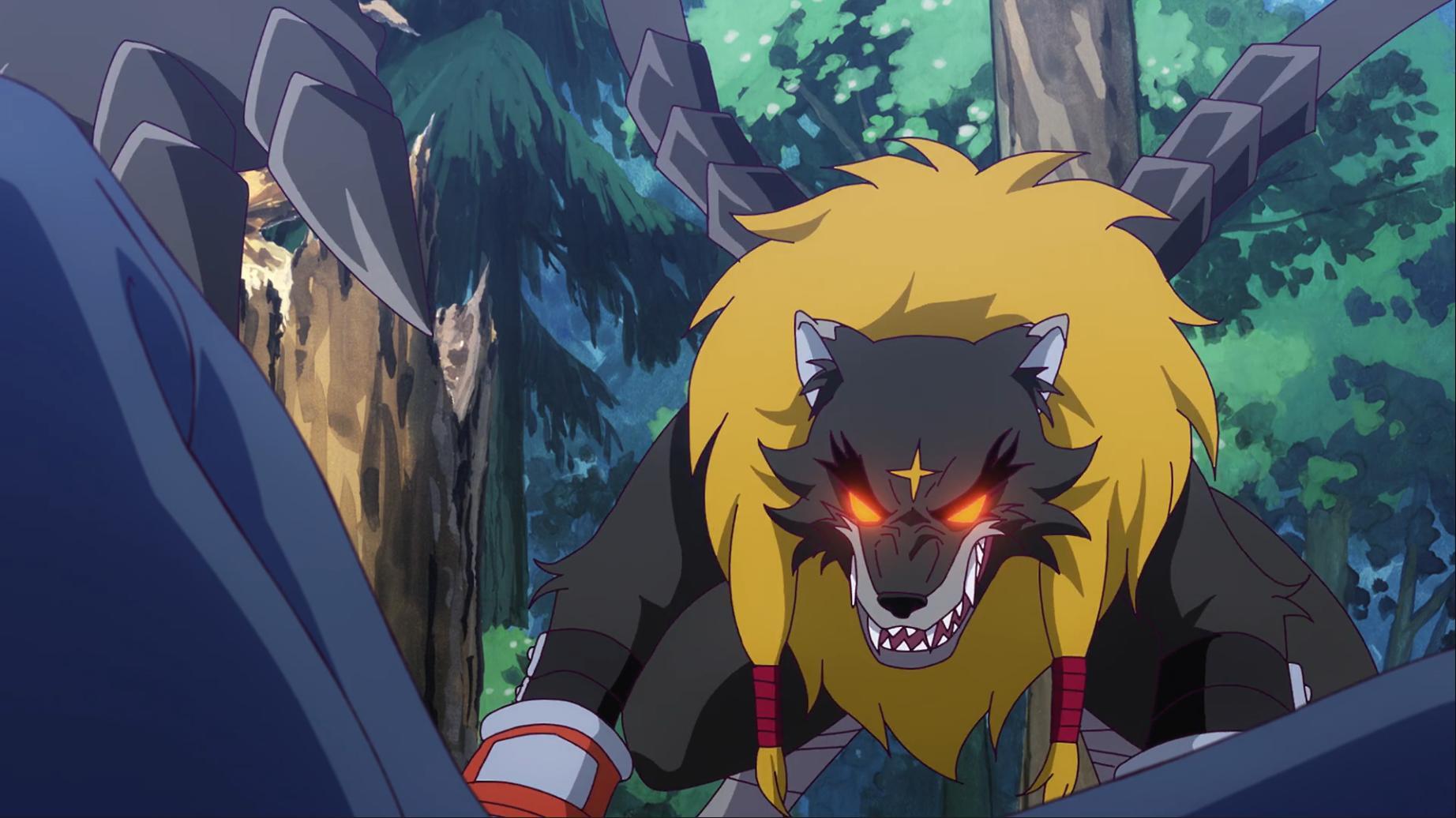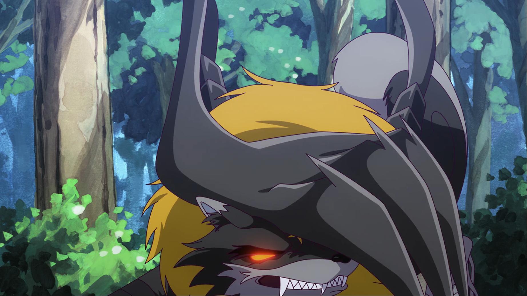 誰知才剛說完兇惡數碼獸突然從森林裡冒出來襲擊智郎和小歌 幸好壁虎獸及時用長舌頭把智郎和小歌救走 襲擊智郎和小歌等人的數碼獸是黑迦奧加獸 然而智郎和小歌兩人注意到黑迦奧加獸的表情好像很痛苦...