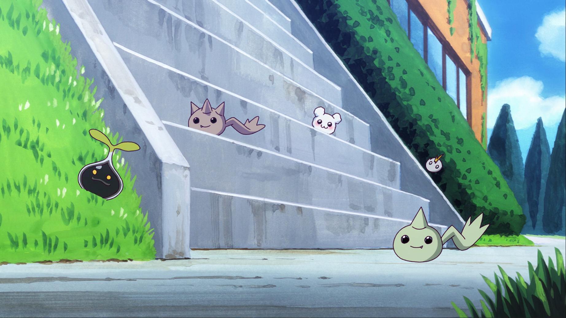 之後黎明團和偶像光美一起造訪收留大量幼年期數碼獸的鵝掌草避難所 壁虎獸把幼年期數碼獸當球玩特技超可愛 小歌小心普莉露梅洛倫等一起加入和幼年期數碼獸一起玩 梅洛倫說自己比他們可愛多了嘻嘻~