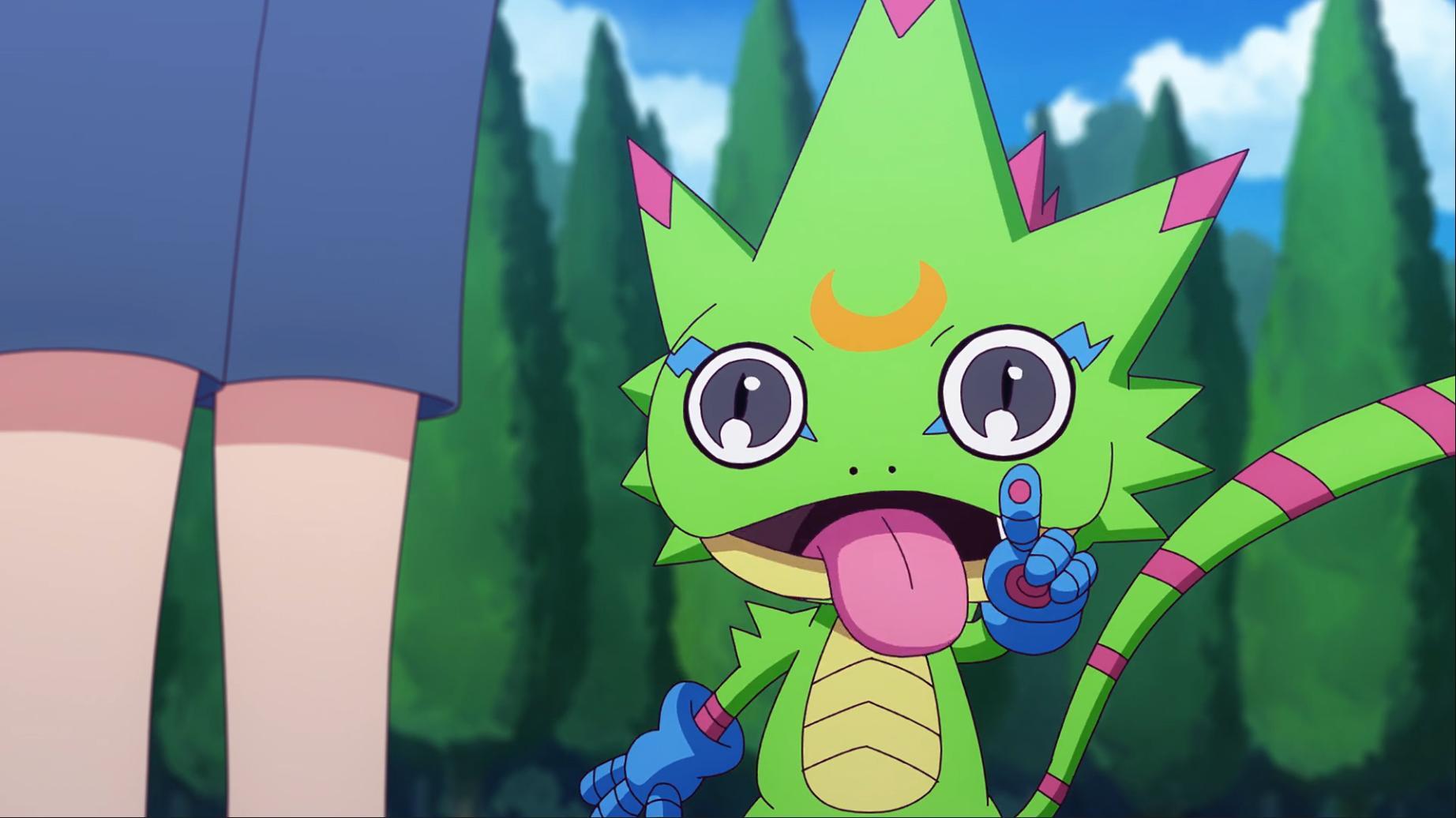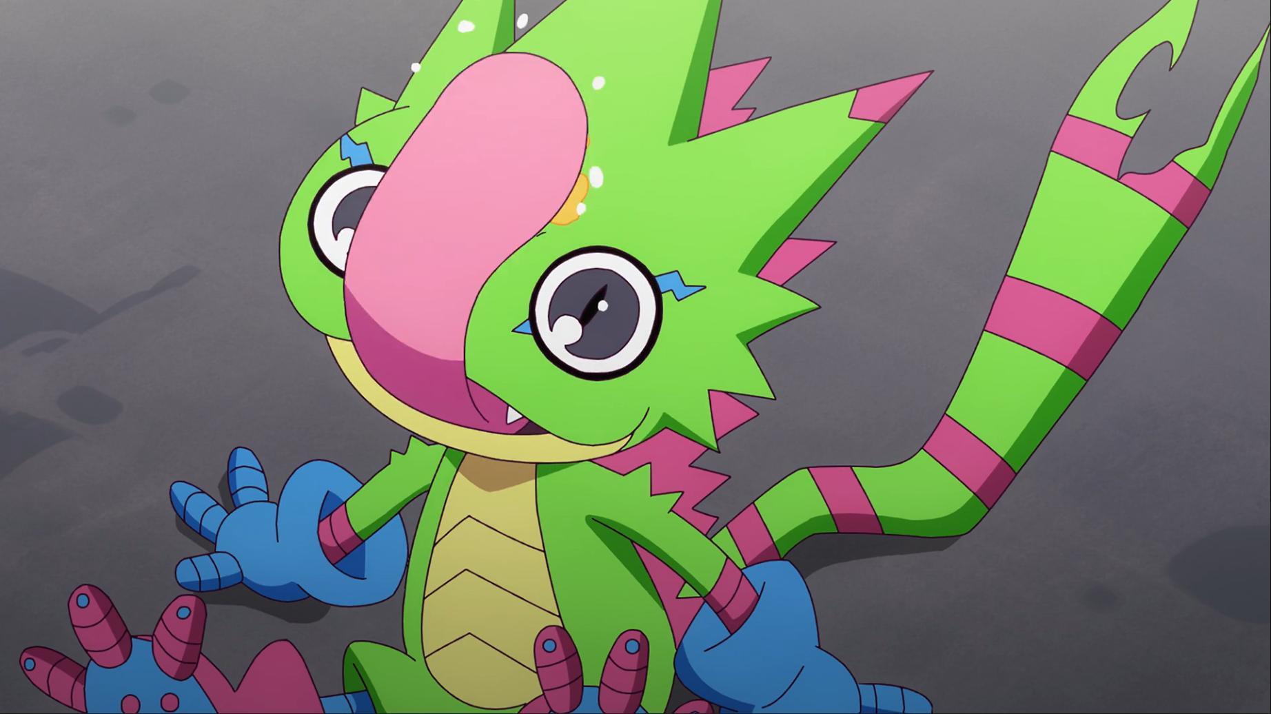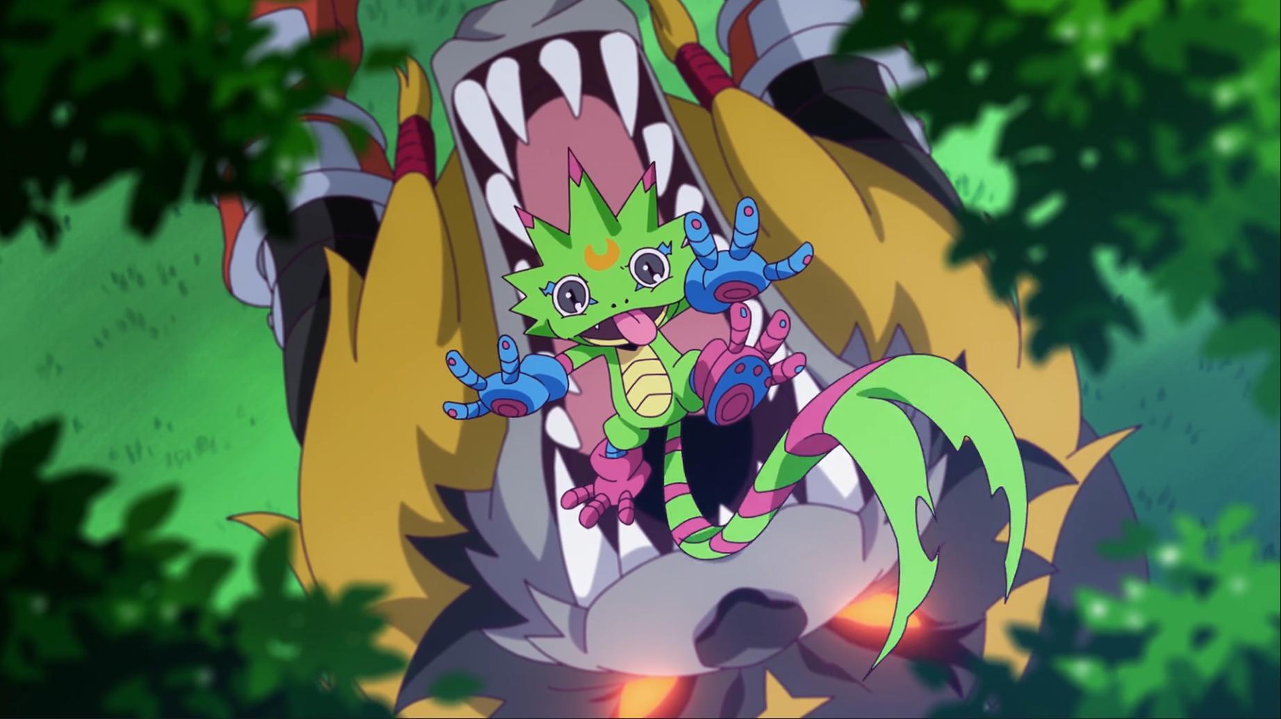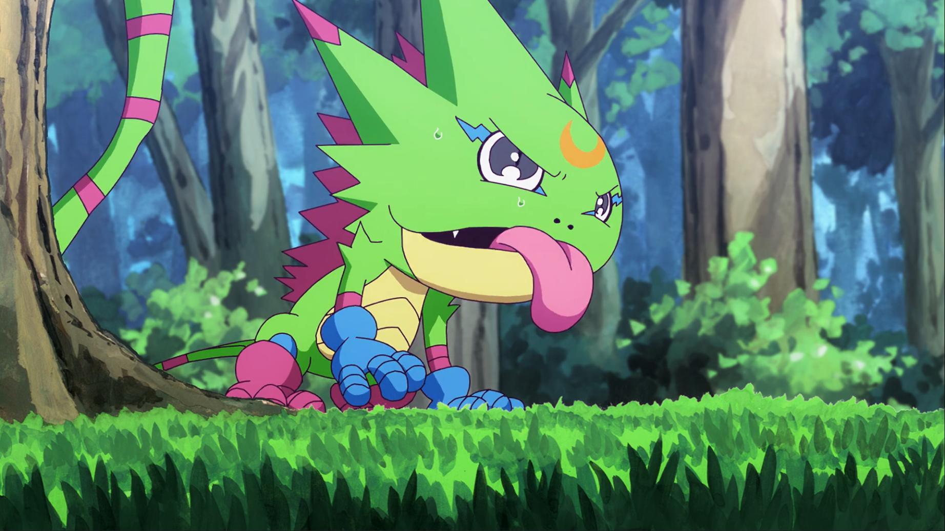智郎和小歌很快找到了壁虎獸 壁虎獸循著氣味在樹洞中發現到一隻幼年期數碼獸 小歌第一次看到幼年氣數碼獸無不感到又驚又喜 還直呼好可愛引起壁虎獸不悅 智郎覺得奇怪幼年期數碼獸怎麼會在森林裡...
