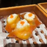 以燒賣皮,包覆內餡絞肉、蝦仁,一籠算六顆,份量來看還算豐富,咬下去的口感皮的軟嫩配內餡紮實感,口感相當平衡。