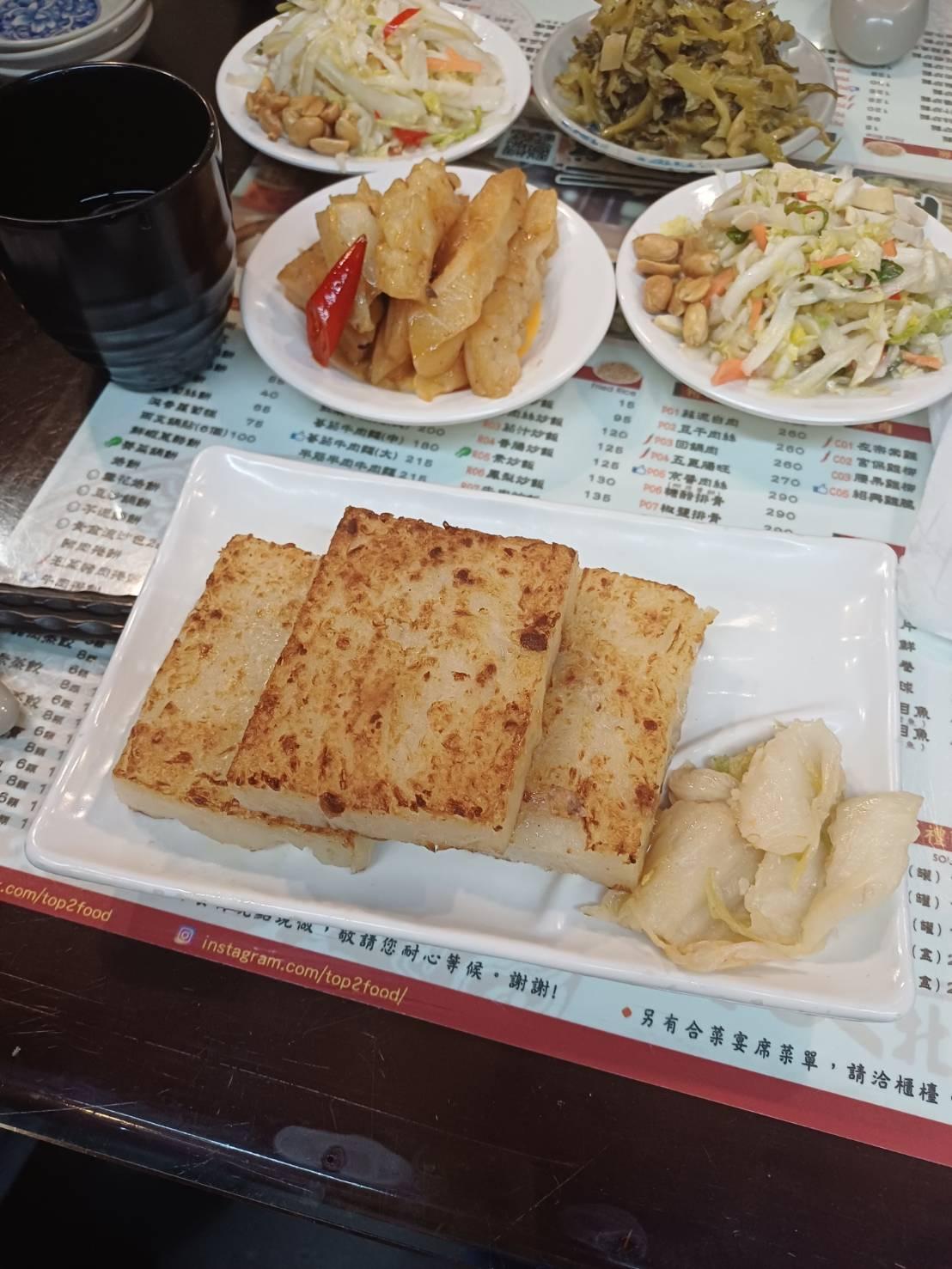 蘿蔔糕外皮表面看出有些酥脆感,沾醬油去吃口感不錯,份量分三塊且未切塊,再配旁邊的菜的一道配菜。