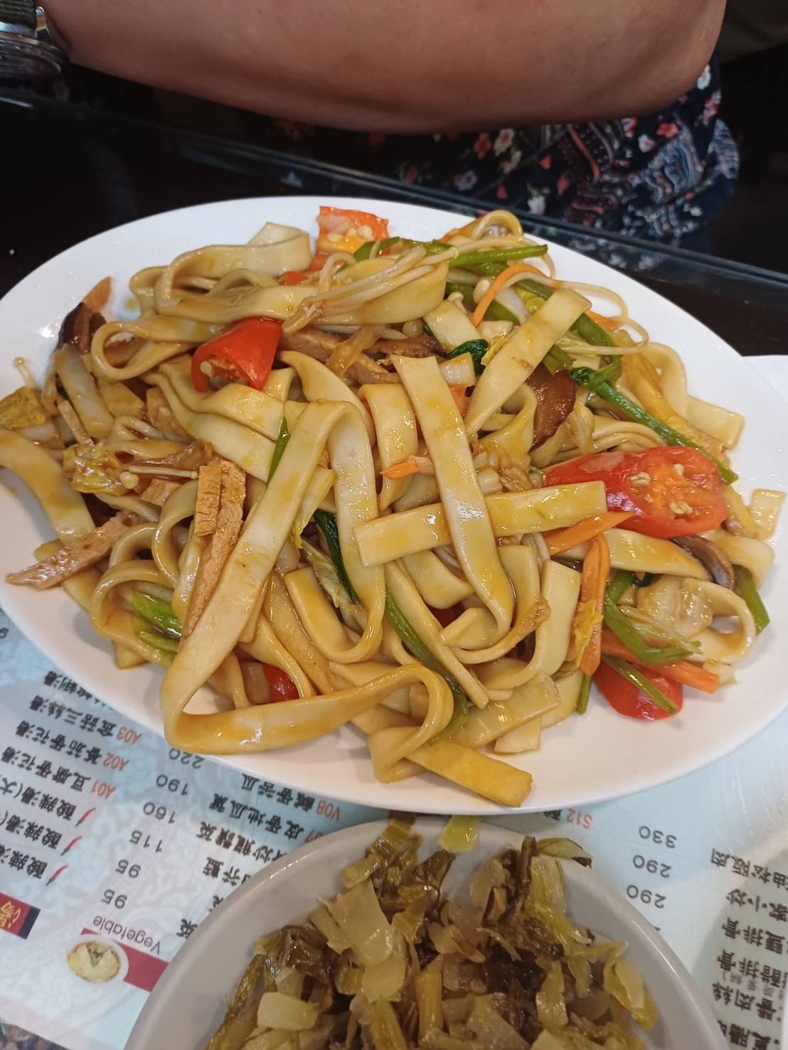 料大致上分粗板條、炒菜、豆皮、辣椒,再配些調味料去拌炒,以素食料來說還算豐富。板條的嚼勁及口感也較一般細麵來的更佳,配其他料吃口感相當美味。