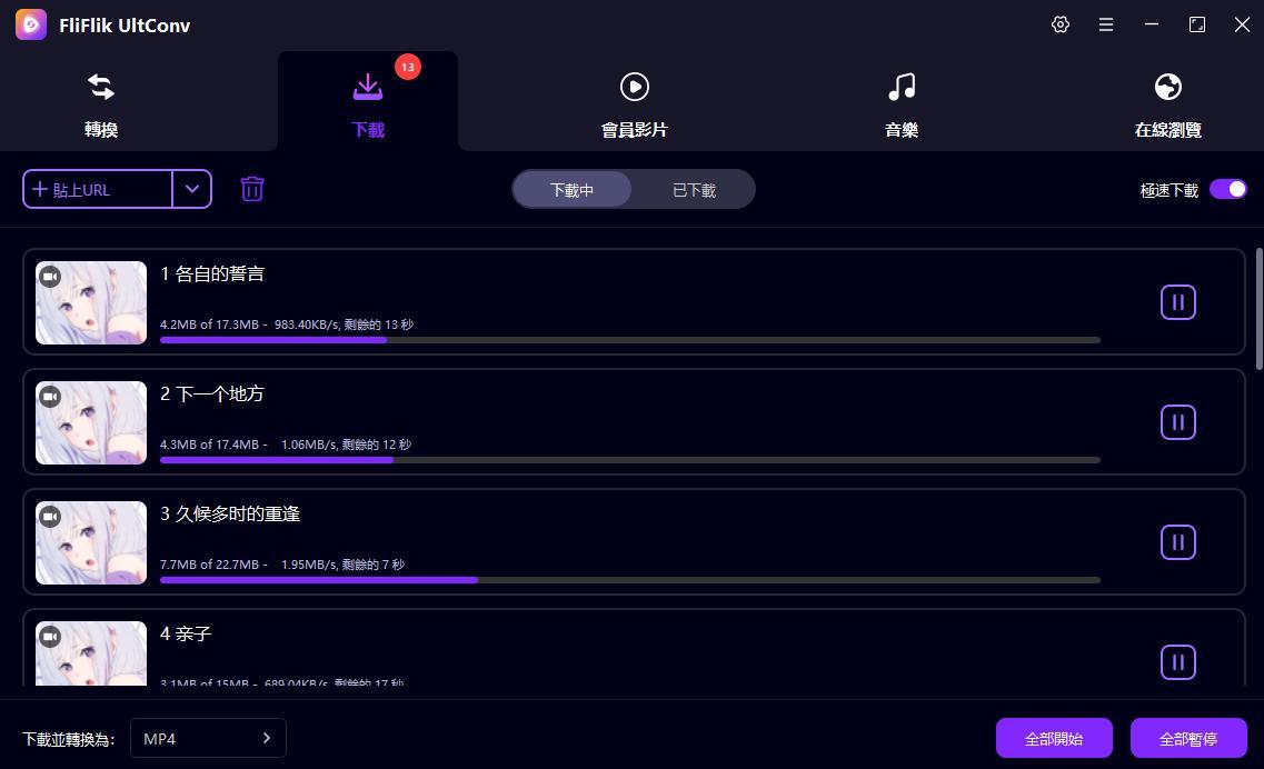 FliFlik 會自動解析影片資源,讓你選擇想要的畫質和格式(例如高清 MP4)。確認好你的選擇後,按下確定,影片就會以超快速度下載到你的電腦啦!