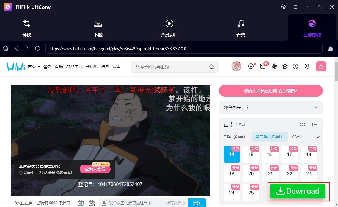 別擔心!今天就要介紹一個能讓所有 Mac 或 PC 上的動漫迷尖叫的神器—— FliFlik UltConv!它能讓你以最簡單、最快速、最高品質的方式,將 BiliBili 上的《從零開始的異世界生活》前三季完整下載到你的電腦裡,而且完全不需要 B 站的大會員!