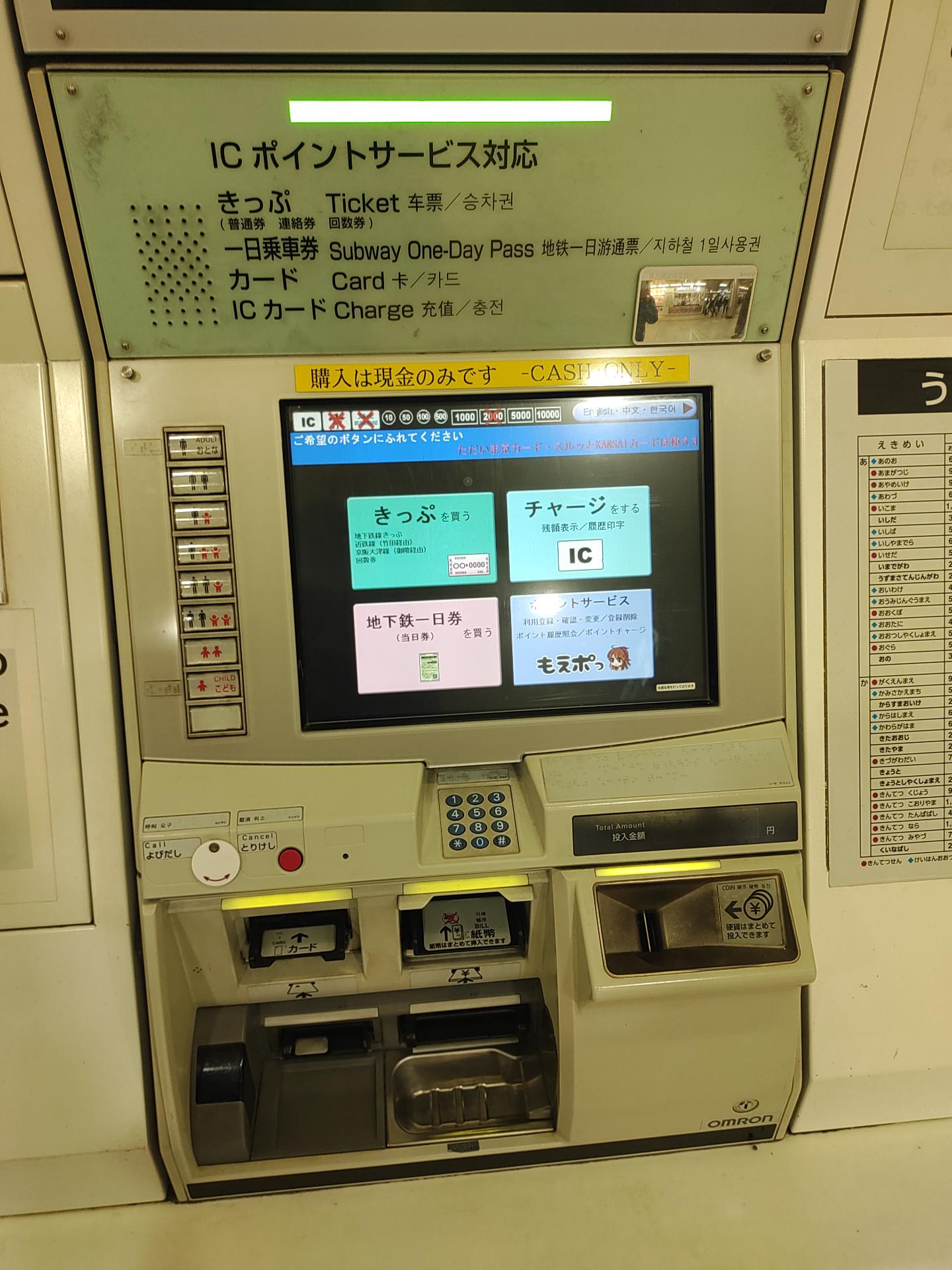 京都的地下鐵有一種時間停滯的感覺,整體的偏暗黃色,連售票機都還是舊款的。