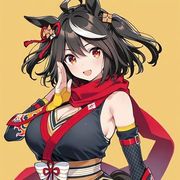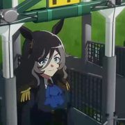 這位賽馬娘會被推測為迷人景致,其一是脖子的緞帶是紅色交叉,且裙子上的黃黑元錄樣式等都是迷人景致的特徵,不過官方並沒有證實,這一形象只出現在最早期的原案中。