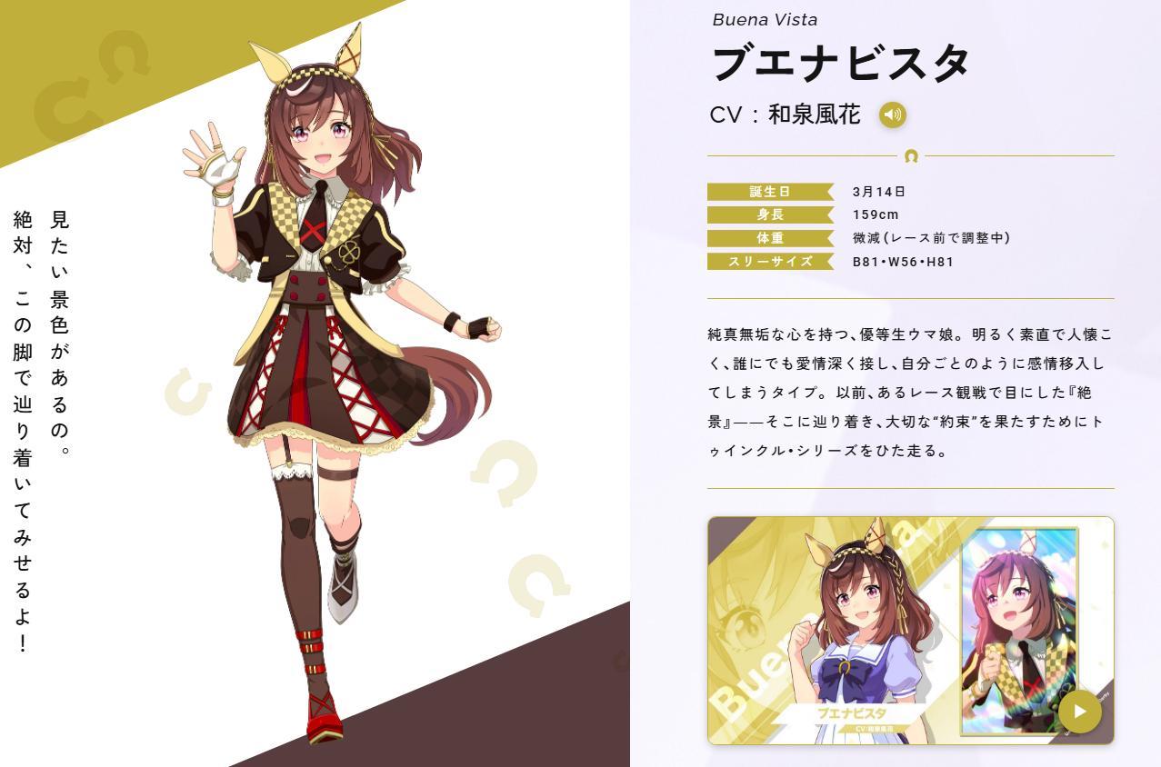 雖然CV是寫水瀨祈,不過遊戲中的迷人景致是和泉風花,水瀨祈目前還沒有為賽馬娘角色配音。