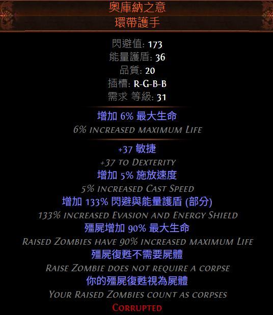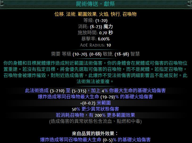 - 屍術傳送:技能品質、技能等級