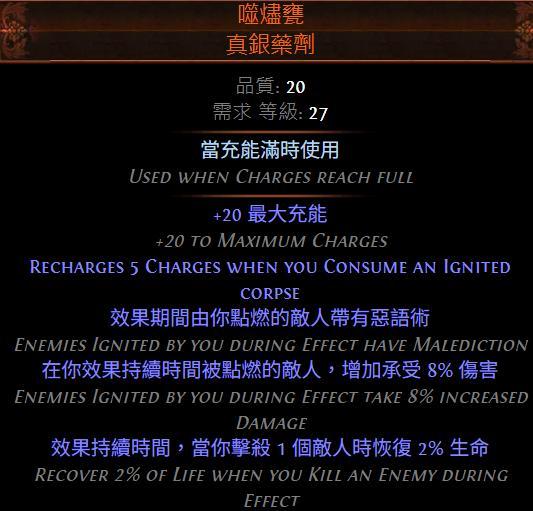 - 暴擊不會造成點燃 增加 100% 對被點燃敵人的擊中傷害