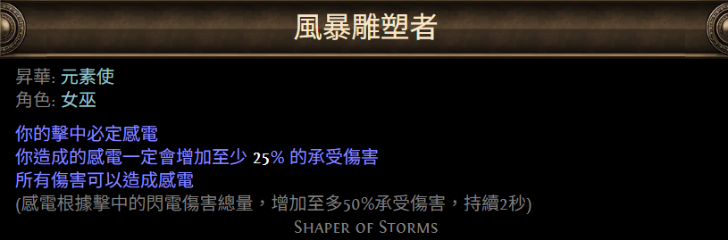 - 風暴雕塑者:搭配裝備和天賦可以拿到41%感電效果增傷